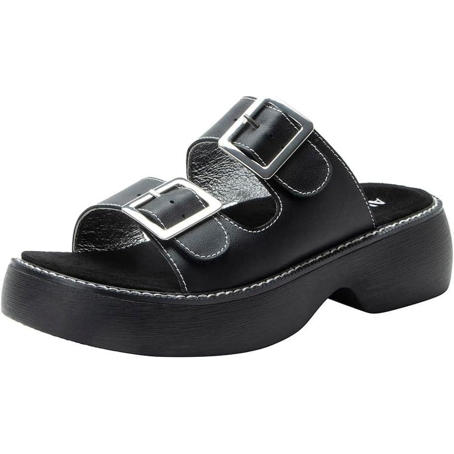 Alegria Women Iza Platform Buckle Leather Double Strap Slide(Black)