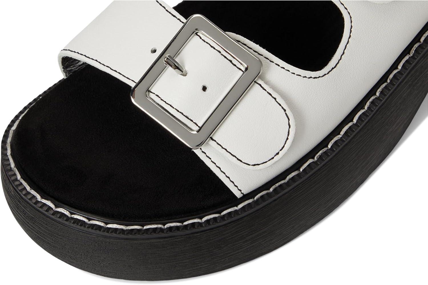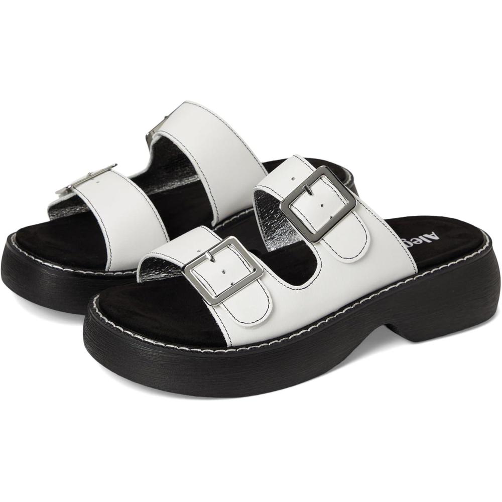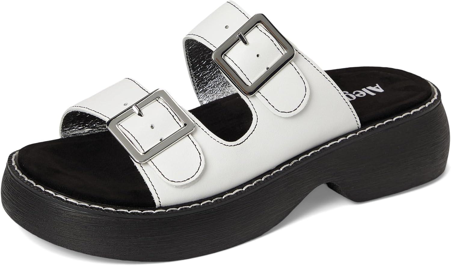 Alegria Women Iza Platform Buckle Leather Double Strap Slide(White)