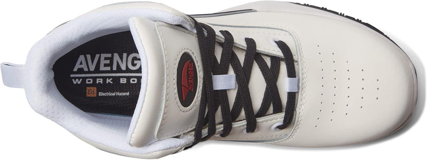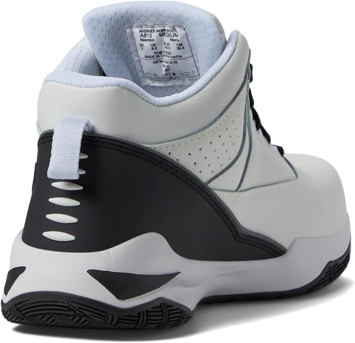 The Avenger Work Boots Reaction are waterproof and slip resistant shoes featuring a Carbon Nanofiber toe cap that meets or exceeds ASTM F2413-18 I/75 C/75 and EH (Electrical Hazard) standards. Slip-resistant rubber outsole meets or exceeds ASTM F3445-21 standards. Action nubuck upper. Sandwich mesh lining. Lace-up closure. EVA midsole. Removable PU foam footbed. Imported.