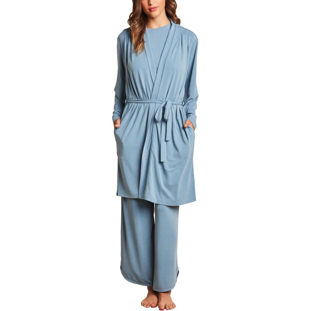 Barefoot Dreams womens Sand Washed Jersey Piped Midi Robe(Seashore)