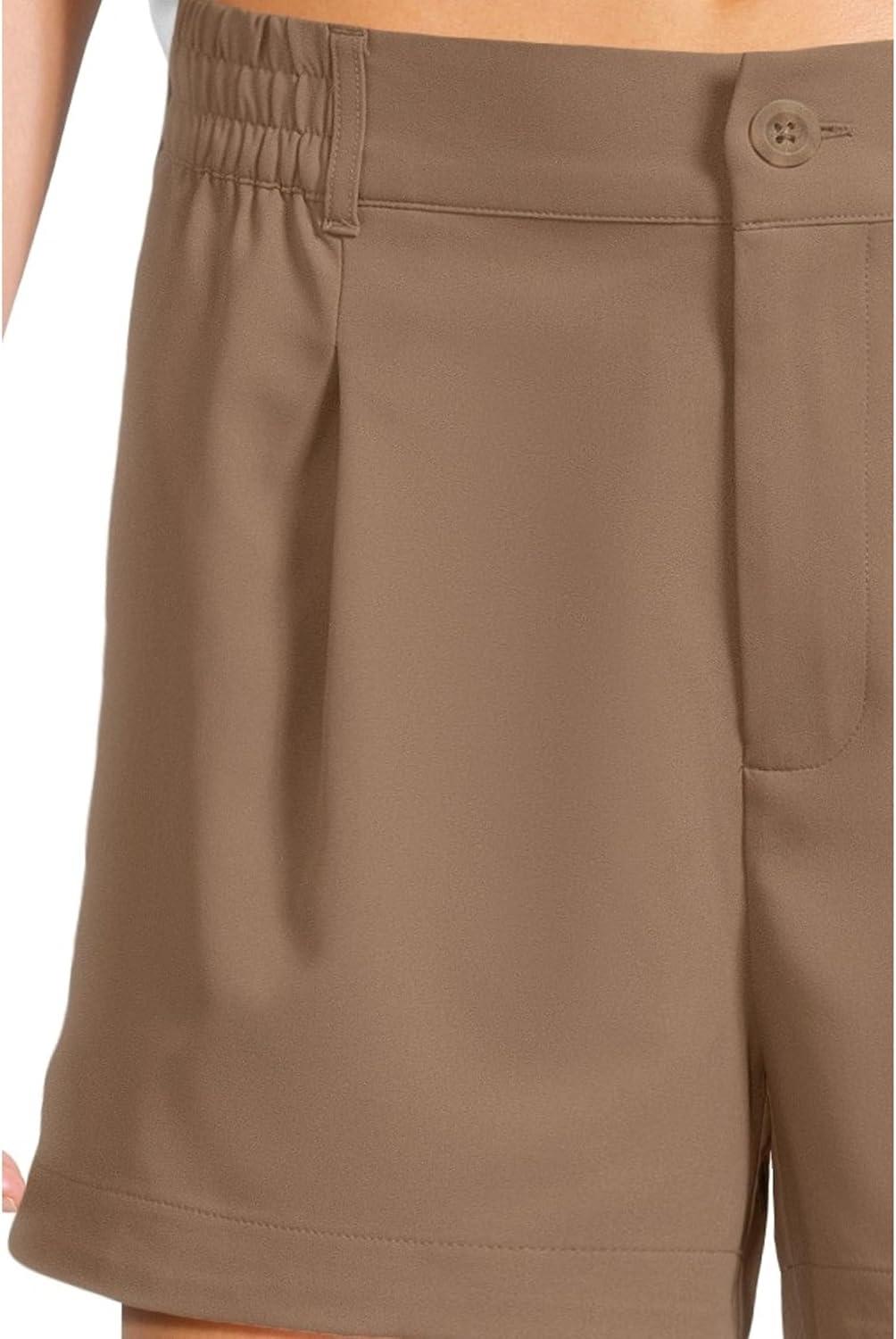 Step up both comfort and style wearing Beyond Yoga Status Shorts. For fans of the Status Trouser, now you can look just as put-together on hotter days when only shorts will do. Waistband is elastic for a stretchy, comfy fit, but designed to look tailored to perfection with front zipper, button, and belt loops. Made of flowy, stretchy JetStretch woven fabric, the pull-on style shorts feature a high-waisted fit, pleats at the front, darts at the back, side seam pockets, and a short-length silhouette. These are cool enough for midtown, but comfy enough to throw on for more casual adventures, like out for a coffee run or dinner down the street. The high-waisted fit is great for pairing with the matching Midtown Cropped Jacket as an easy, on-point outfit. 100% polyester. Machine washable.