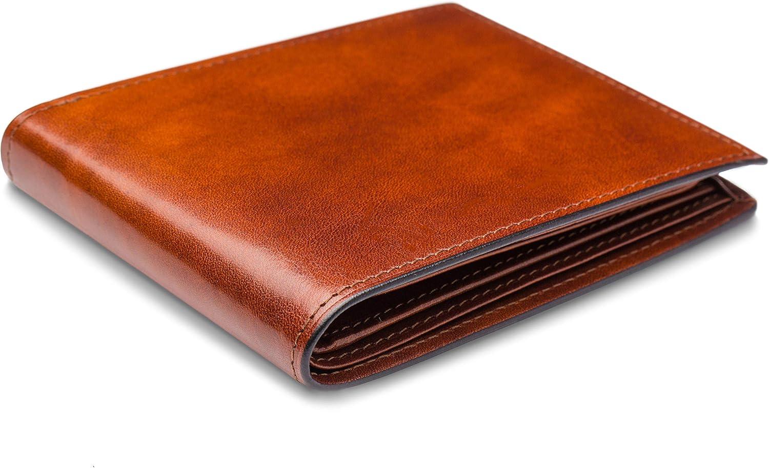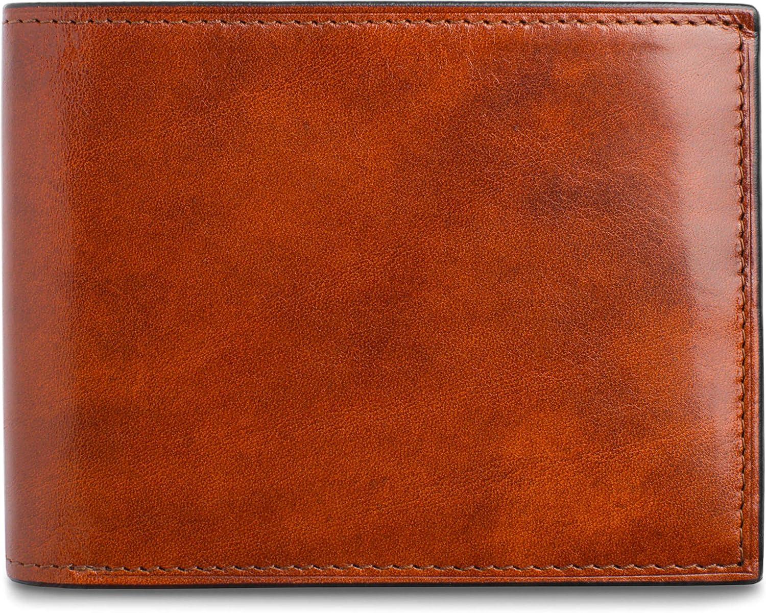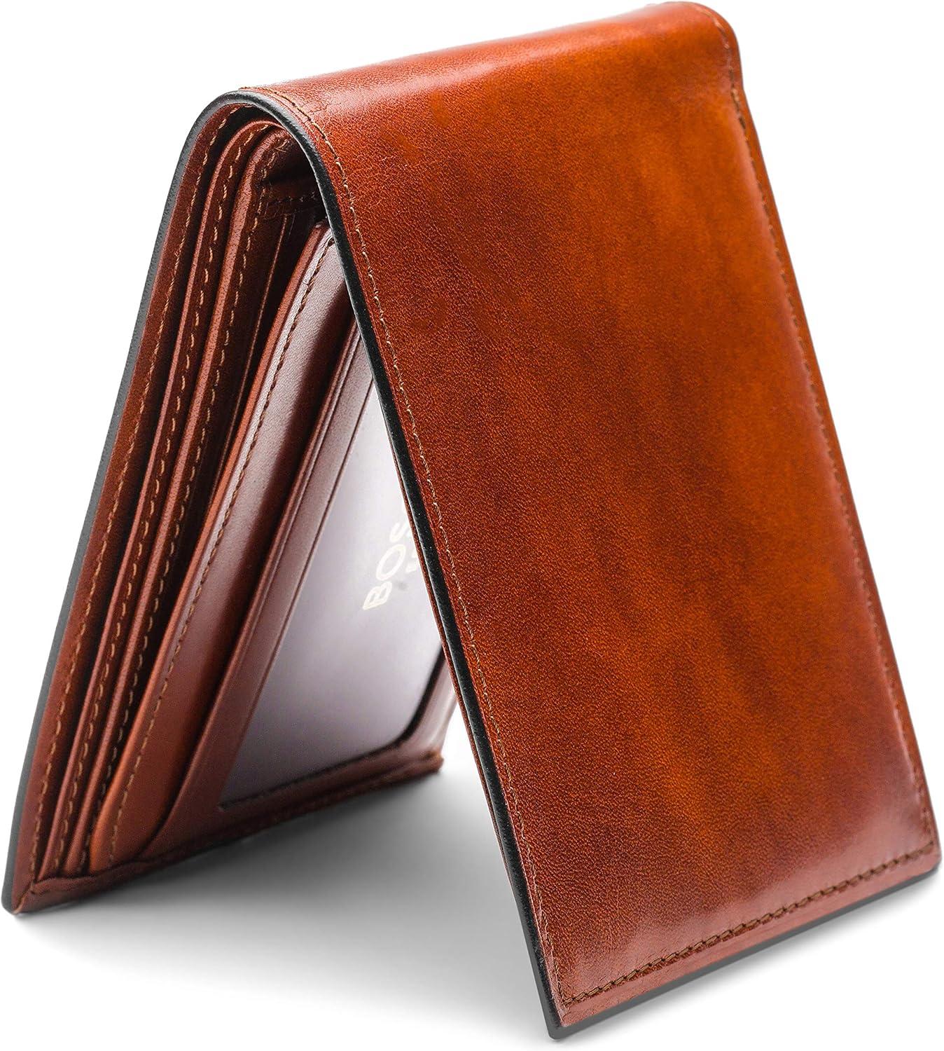 Bosca Men’s Old Leather Bifold Wallet with ID Window and Card Slots – Italian Leather, Durable and Stylish, Black(Amber)