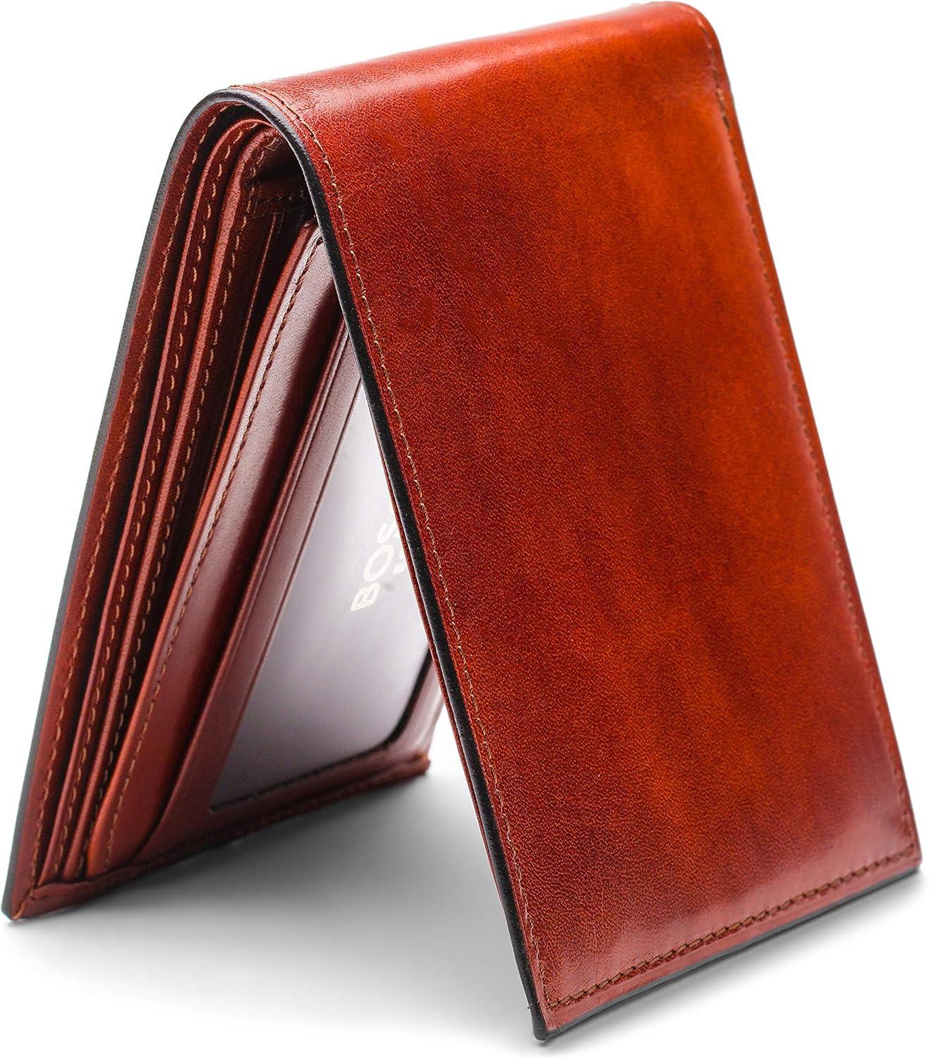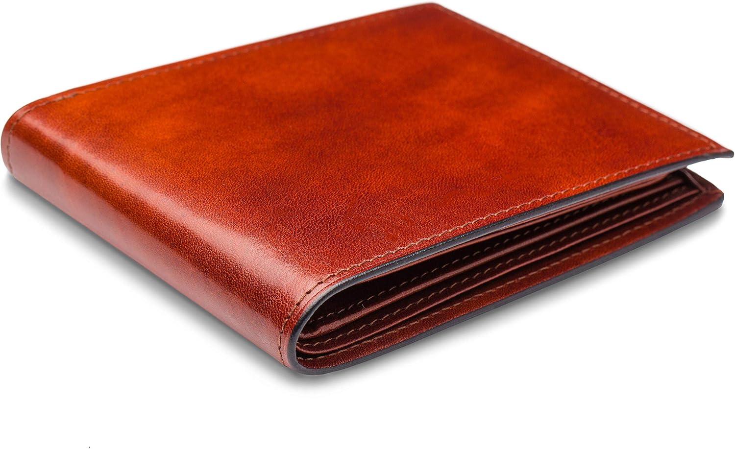 Bosca Men’s Old Leather Bifold Wallet with ID Window and Card Slots – Italian Leather, Durable and Stylish, Black(Cognac)
