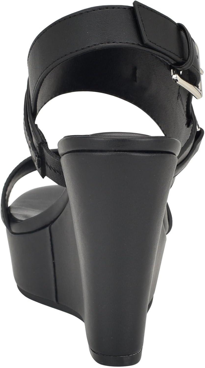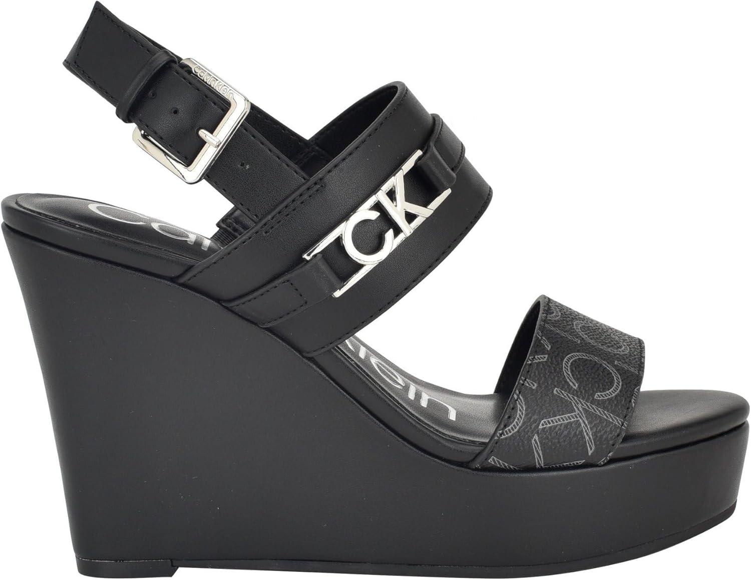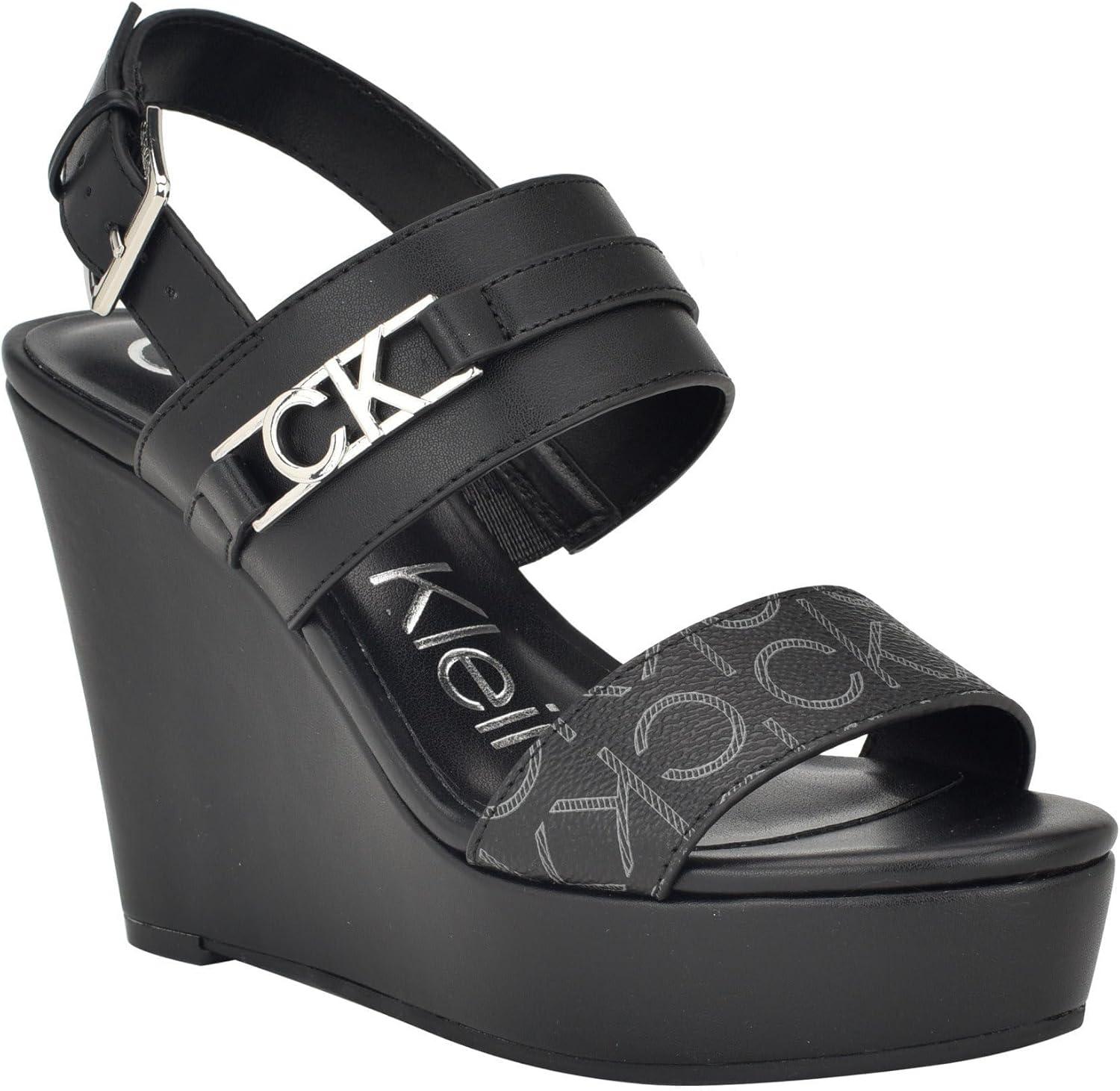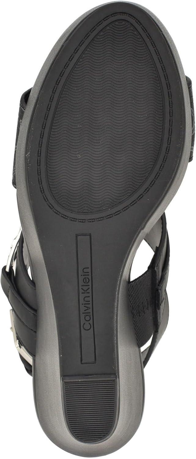 Step out in style in the Calvin Klein Kanova dress wedge sandal. The Kanova features an open-toe silhouette, an adjustable ankle strap and CK logo detailing. The perfect wardrobe staple! Founded in New York in 1968, the brand elevates everyday essentials to globally iconic status.