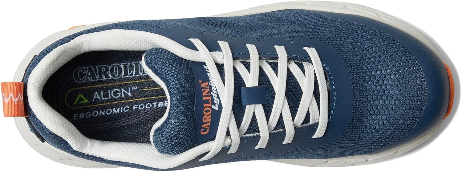 Take on any job with full confidence of safety in the Carolina Lytning Align sneakers. Low top cut with padded collars. Pull tabs on heels. Lace-up closures. Composite safety toe meets ASTM F2413-18 I/C, EH (Electrical Hazard) standards. Features removeable ergonomic footbed design to reduce joint and muscle fatigue, neck and shoulder strain, posture and back problems, and ankle and arch stability. Non-metalic shank. Toe guard design. Round, closed toe silhouette. Knit textile and synthetic leather uppers. Mesh textile linings. EVA footbed and midsoles. Rubber slip-resistent outsole meets ASTM F3445-21/ASTM F2913 standard. Imported.
