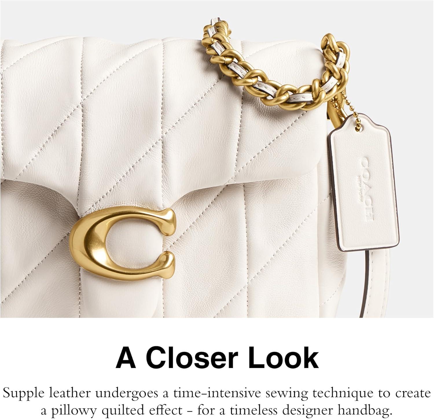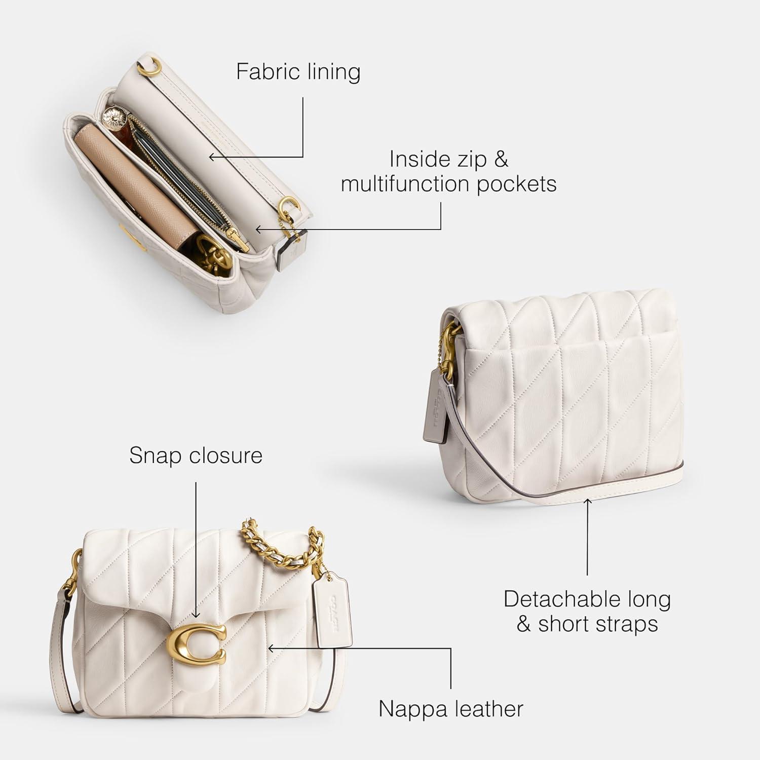A modern take on an archival 1970s Coach design, this structured Coach Tabby bag is crafted of quilted nappa leather & finished with a snap closure and magnetic snap pockets for easy access to essentials. Supple leather undergoes a time-intensive sewing technique to create a pillowy effect – quilted nappa leather for the perfect statement Coach bag.