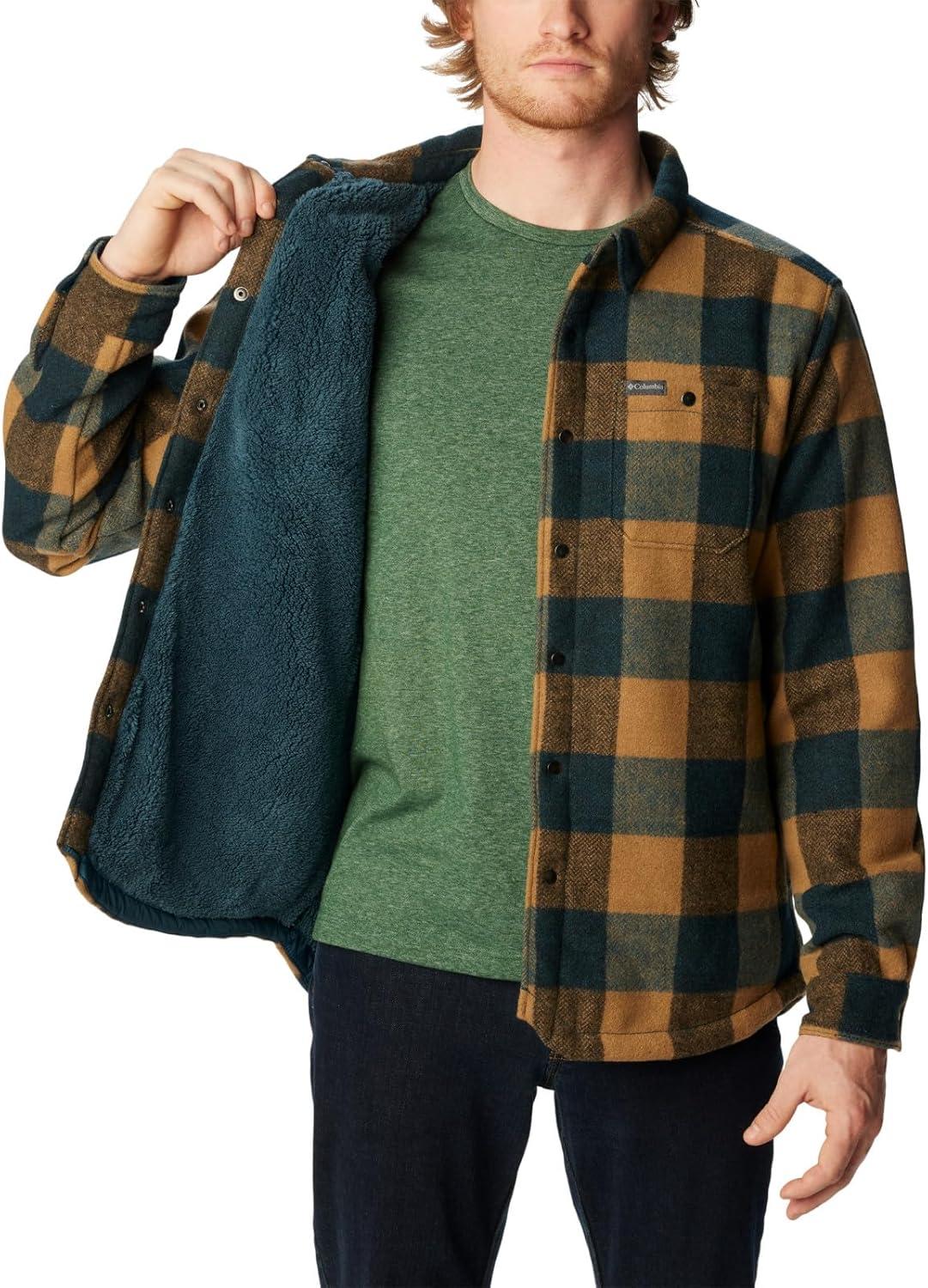 This sherpa-lined shirt jacket delivers the look of a classic button-up with the comfort of a soft fleece. It's one you'll hold onto year after year. Columbia offers this shirt jacket in multiple colors and sizes. Regular fit.