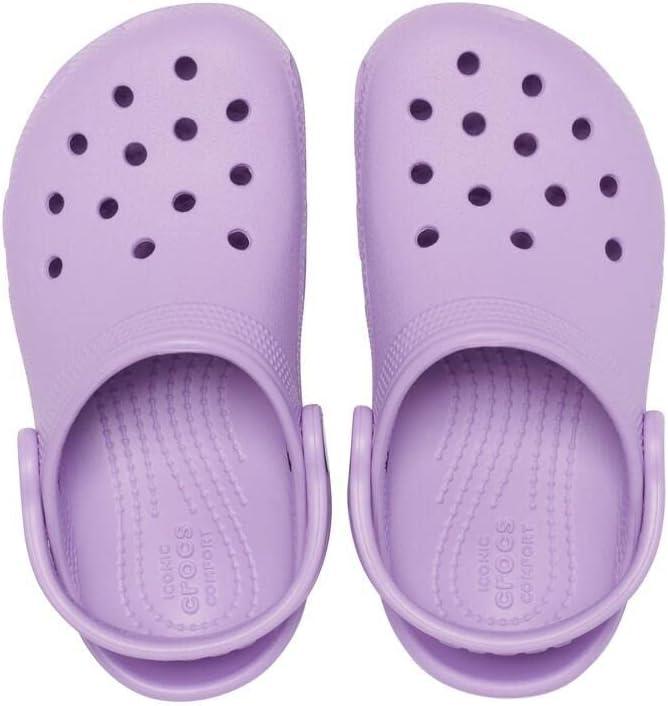 Start your little one out on the right foot with the Crocs Kids Classic Littles Clogs. EVA construction. Slip-on design. Pivoting heel straps for a more secure fit. Iconic Crocs Comfort: Lightweight. Flexible. 360-degree comfort. Non-marking outsole. Find Your Size: We recommend sizing up (e.g. if you are a 7.5, size up to an 8)