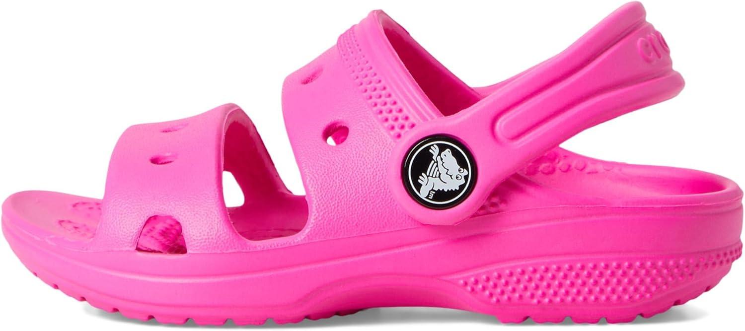 The look and feel of our comfortable Classic Clog and Crocs Slide, now in sandal form. Two upper straps and a secure backstrap offer even more comfort, and seven holes on each sandal allow your kids to personalize with Jibbitz charms. Original Croslite foam cushion will keep your little ones supported on every adventure.
