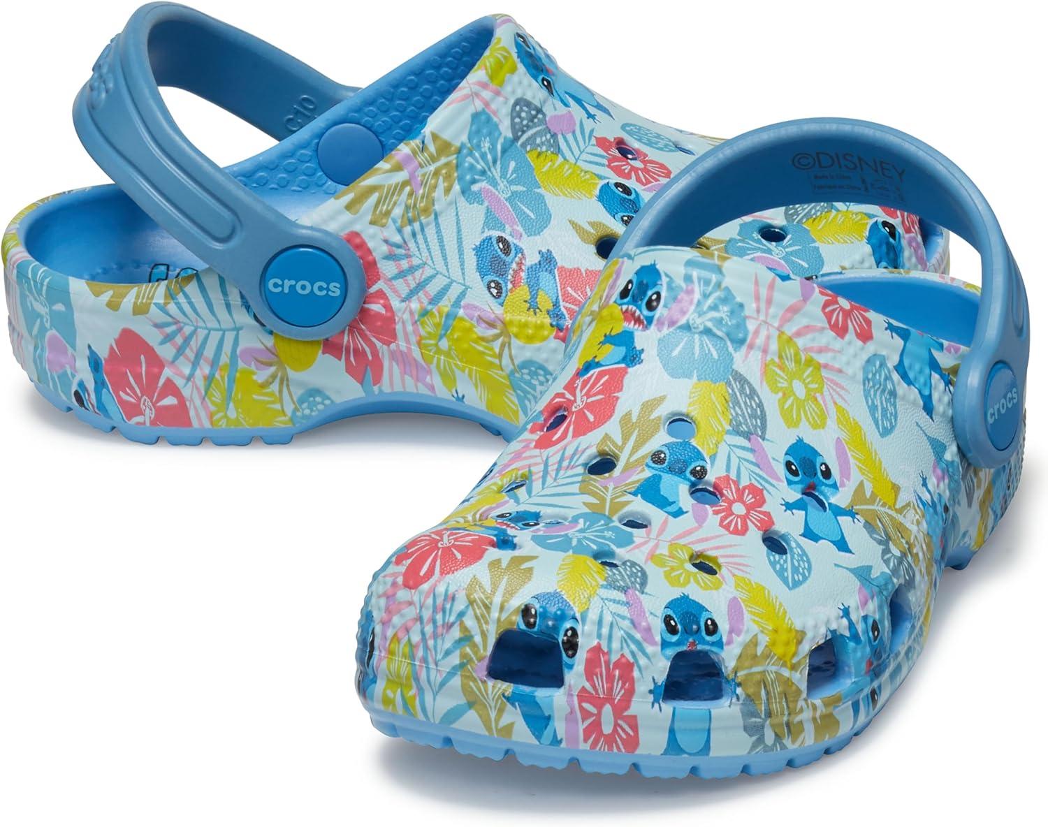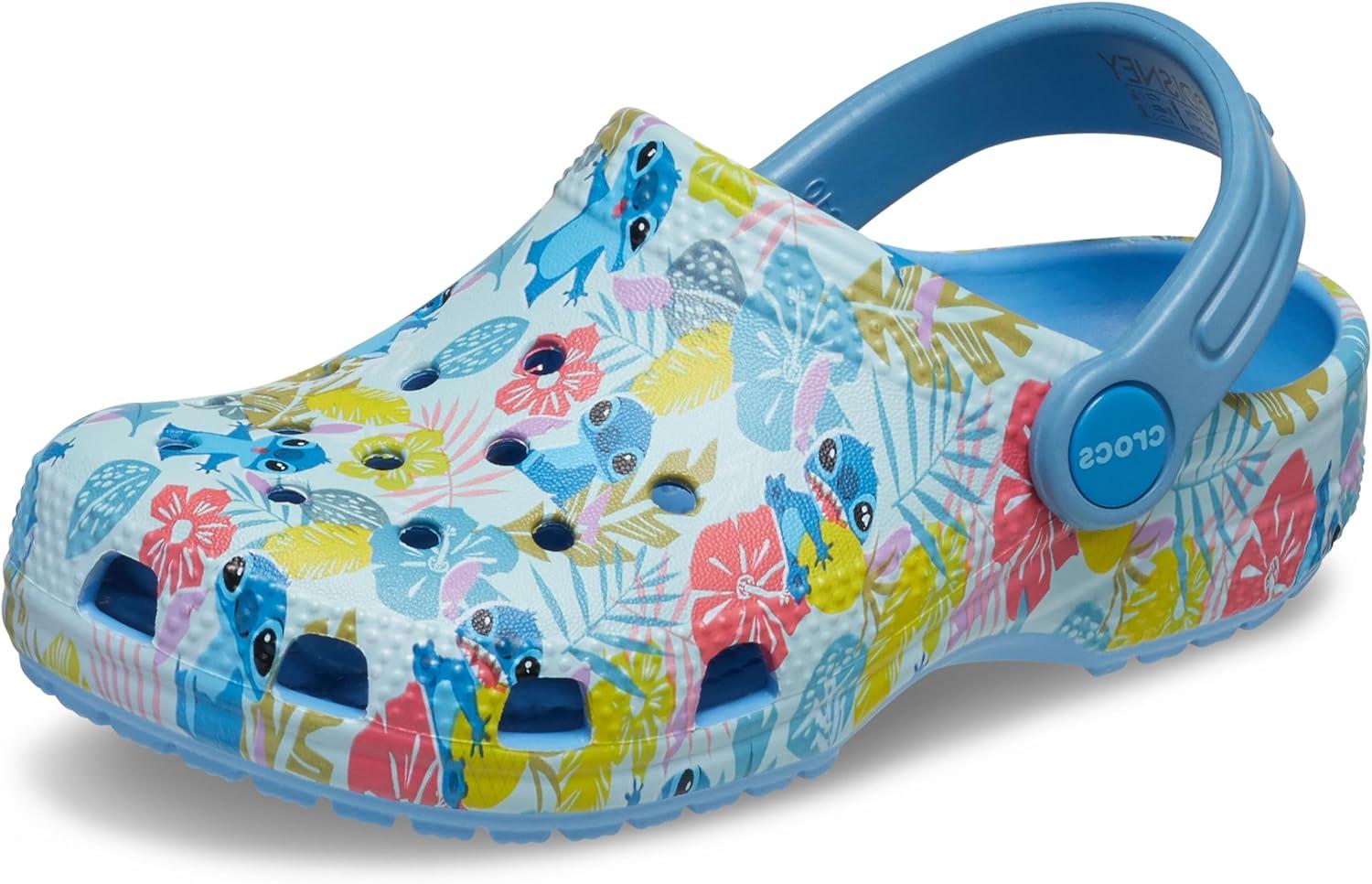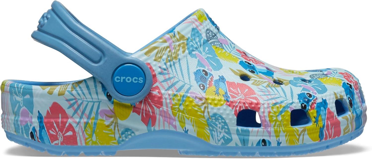 Crocs Kids Stitch Classic Clogs for Kids – Ethylene Vinyl Acetate – Round Toe Design – Pivot Heel Strap(Stitch/Floral)