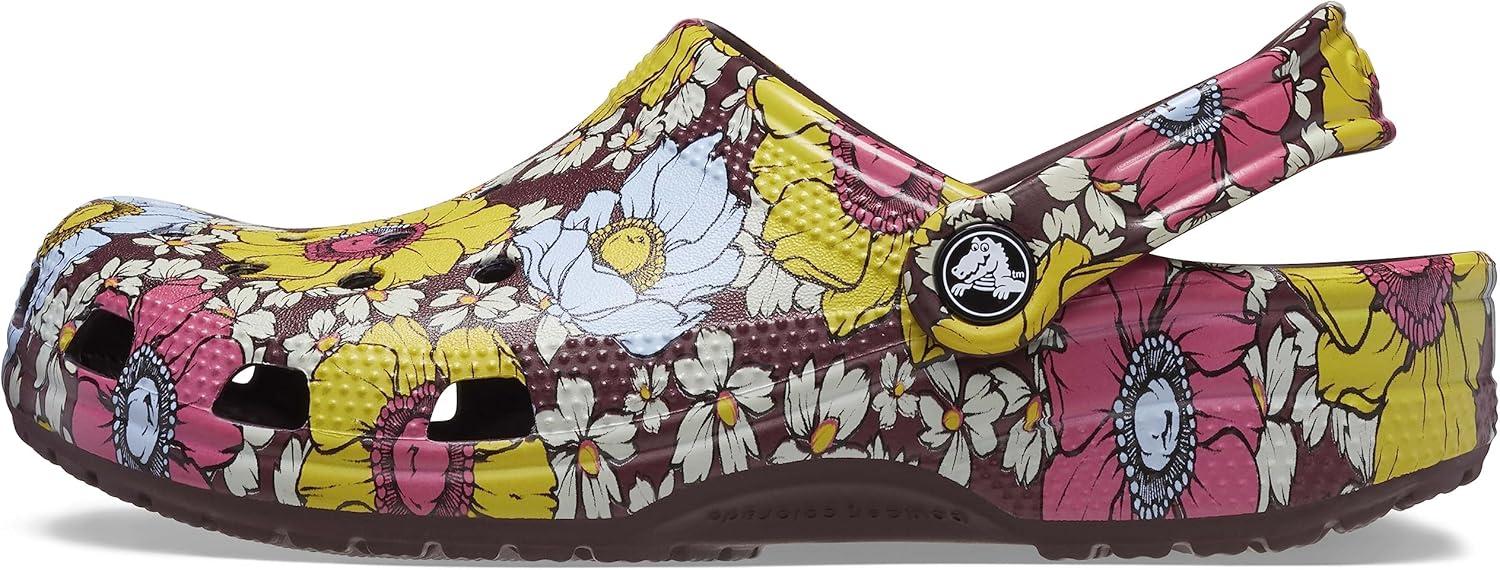 Crocs Unisex Adult Classic Marbled Tie-Dye Clogs(Dark Cherry/Multi Retro Floral)