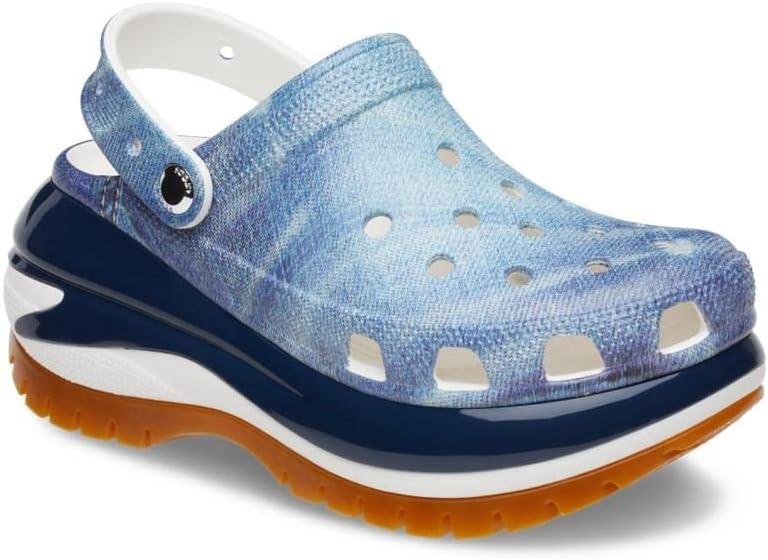 Crocs Unisex Adult Mega Crush Clogs(White/Multi Denim)