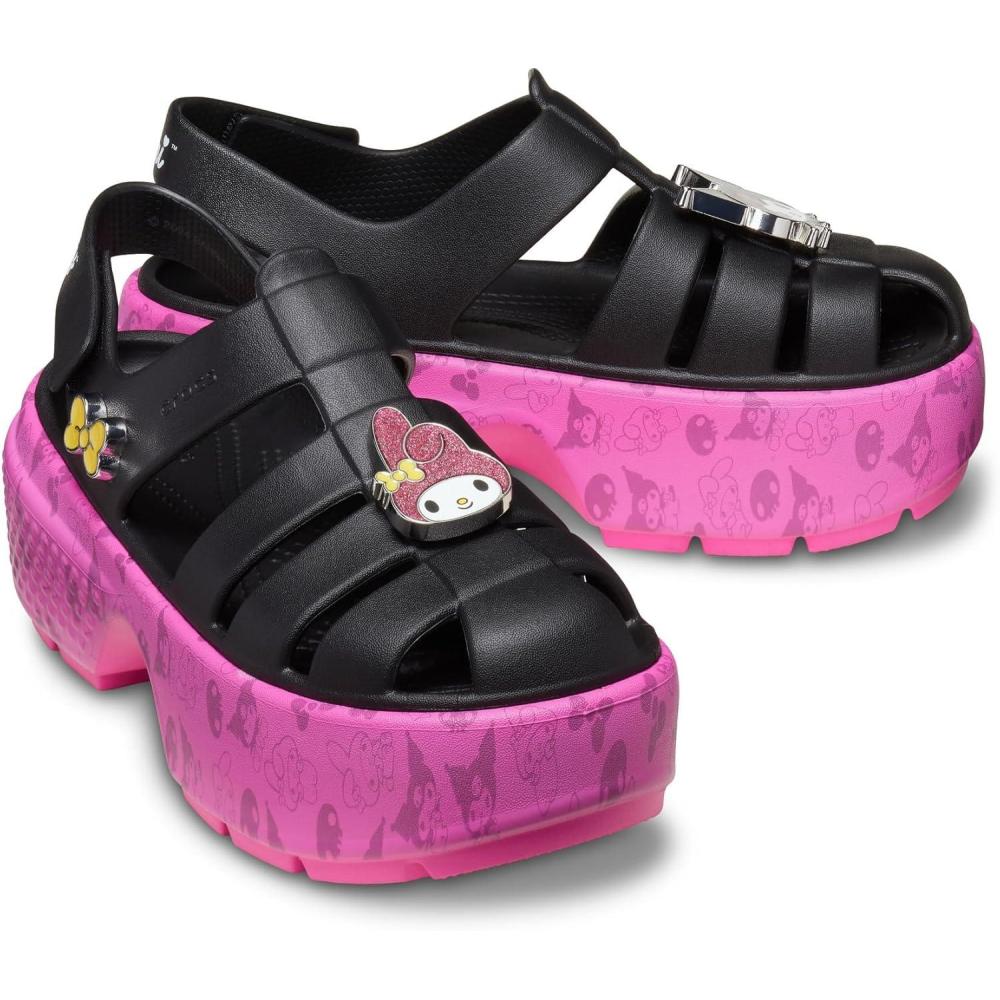 Crocs unisex-adult Sanrio My Melody/Kuromi Stomp Sandal(Black/Pink)