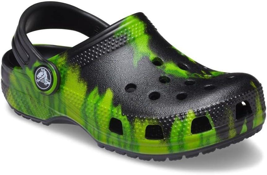 Crocs Unisex-Child Classic Graphic Clog(Black/Lime Punch)