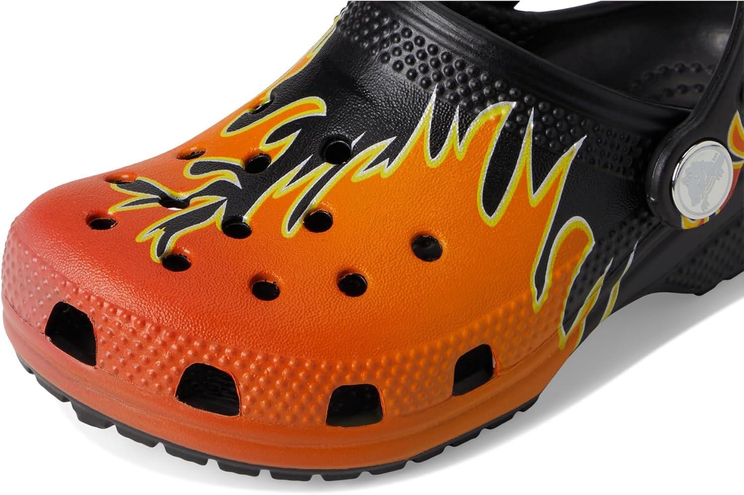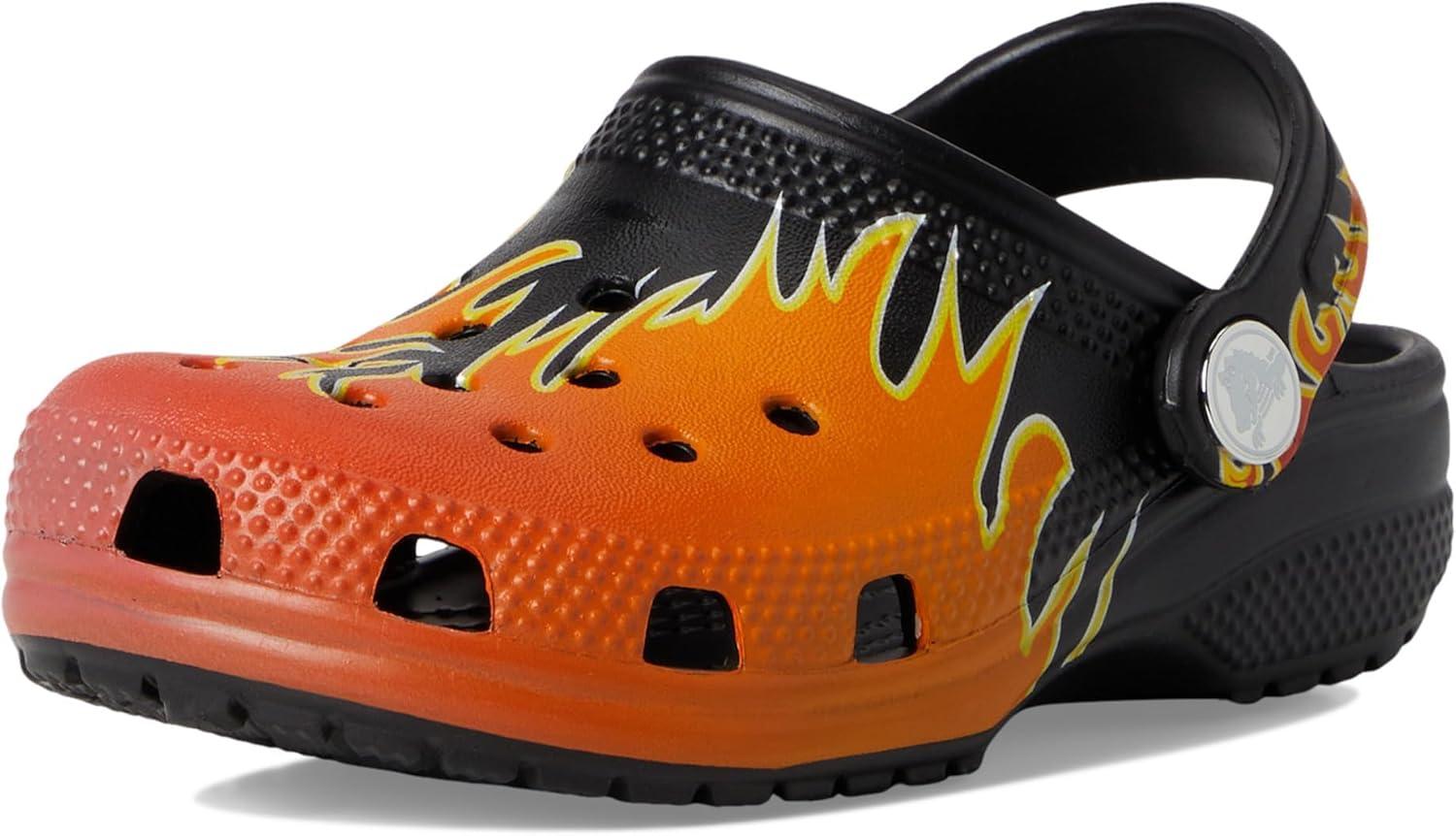 Crocs Unisex-Child Classic Graphic Clog(Black/Multi Flames)