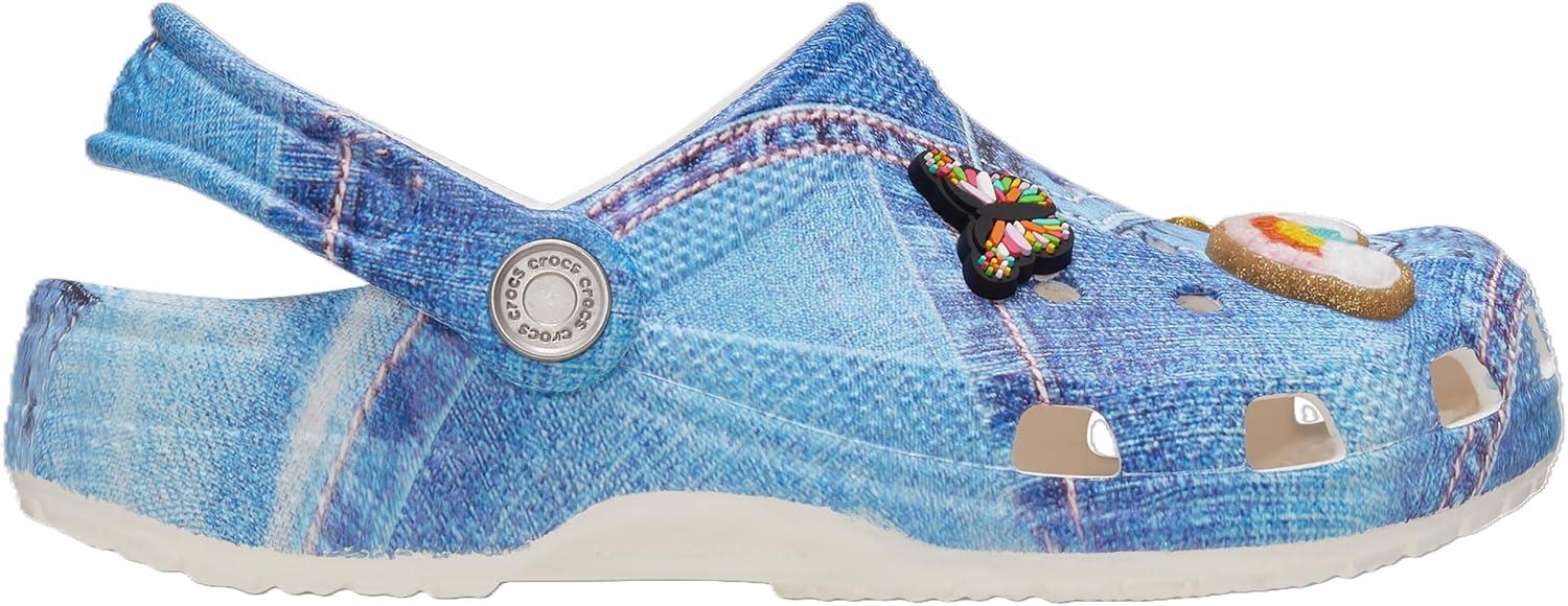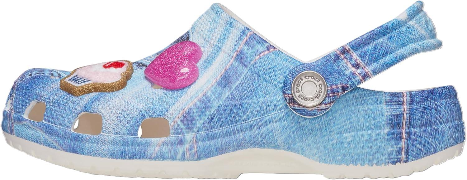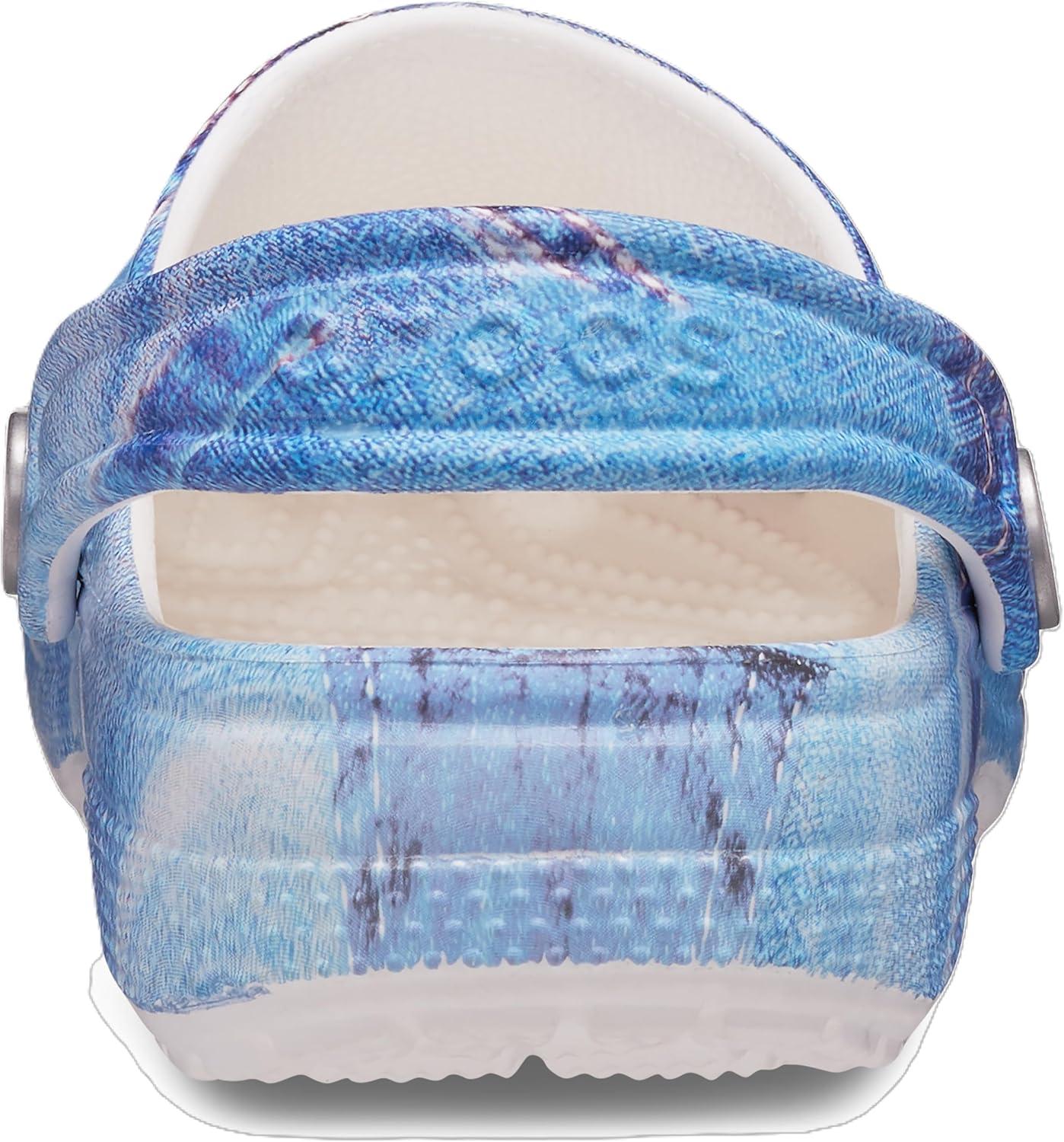 Crocs Unisex-Child Classic Graphic Clog(Denim Patch/White Multi)