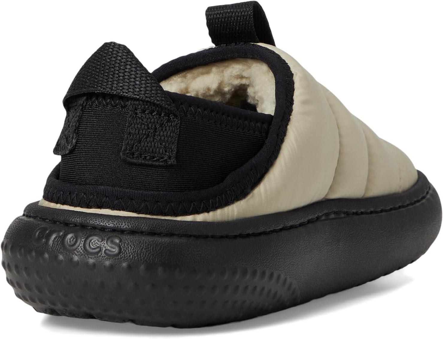 A twist on the signature classic clogs, the Crocs Kids Classic Puff Moc shoes feature a lightweight, durable build with advanced ventilation for breathability and to help drain water and debris. These clogs are crafted with an EVA upper and lining for added comfort while the plush faux fur lining provides supreme warmth and cushioning, ensuring your little one's feet stay happy and snug all day long. Offering versatile lightweight comfort, these clogs for kids are perfect for any adventure, from playground, and beach, to family outings. Step up your child's footwear game with these slip-on clogs. Pull tab at the front. Round toe silhouette. EVA outsole.