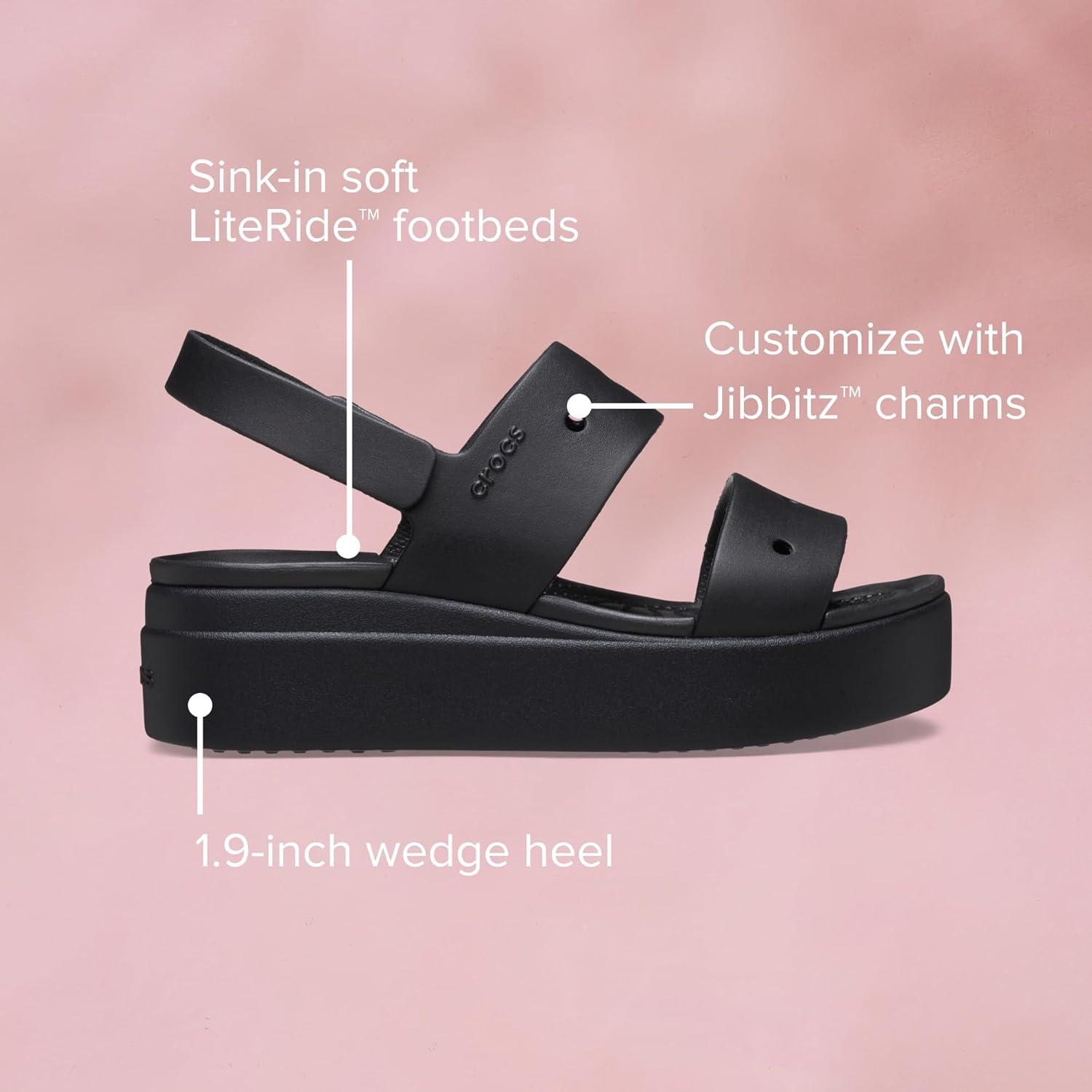 Crocs Women’s Brooklyn 4U Low Wedges, Platform Wedge Sandals for Women(Black)