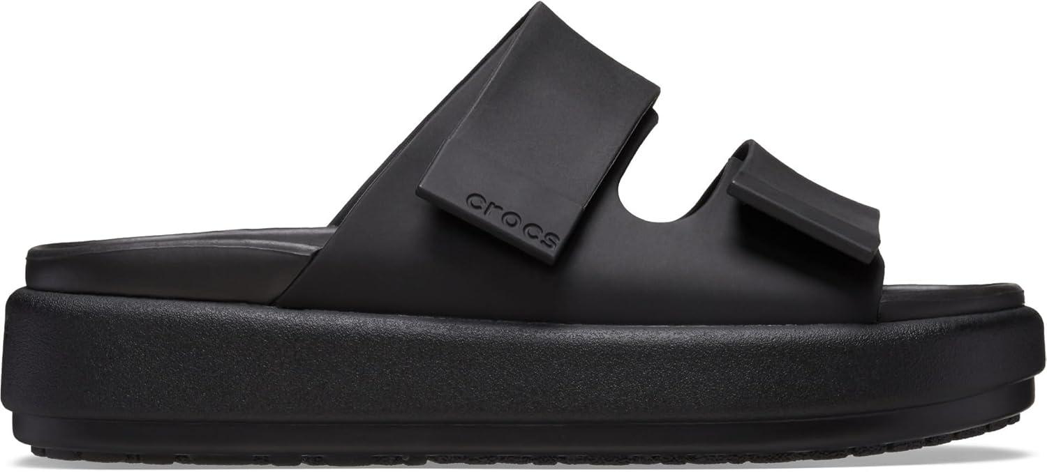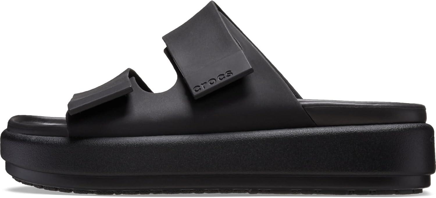 Slip into style and comfort by wearing the Crocs Brooklyn Luxe Sandals. Crafted with thermoplastic midsole that offers cushioned comfort, these slide sandals are an ideal choice for your everyday wear. A part of the Brooklyn Luxe collection, these comfy slippers come with adjustable straps with a hook-and-loop closure that offers a secure fit. The TPU upper, insole, and lining offer all-day comfort. Perfect for casual outings and beach trips, these platform slides make a great addition to your footwear collection. Slip-on style. Brand detailing on the footbed. Open, round toe silhouette. Platform heels. Thermoplastic outsole.