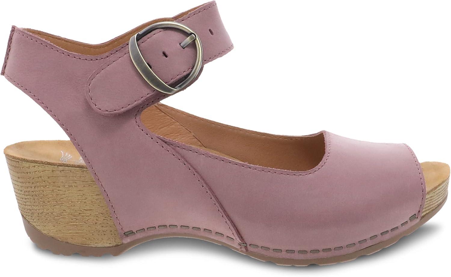 Dansko Tiana Slip-On Platform Sandal for Women – Cushioned, Contoured Footbed for All-Day Comfort and Support – Hook & Loop Strap with Buckle Detail – Lightweight Rubber Outsole(Blush)