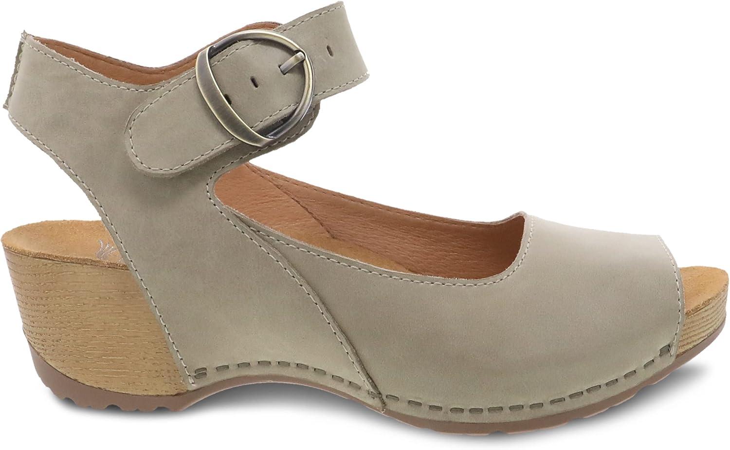 Dansko Tiana Slip-On Platform Sandal for Women – Cushioned, Contoured Footbed for All-Day Comfort and Support – Hook & Loop Strap with Buckle Detail – Lightweight Rubber Outsole(Khaki)