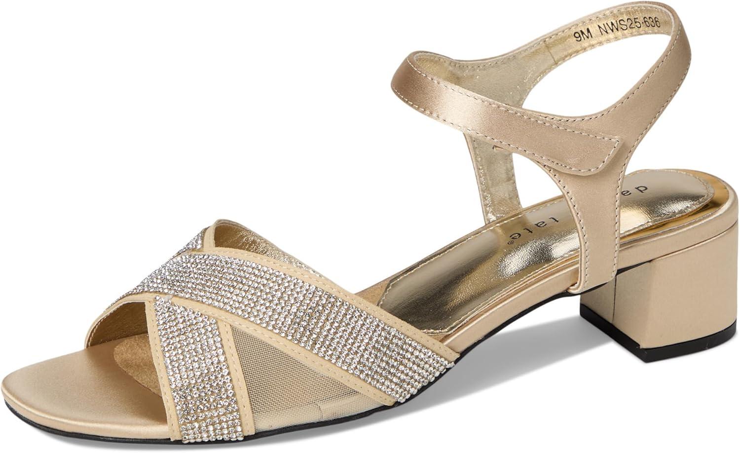 “The Holiday” by David Tate is an exquisite low-heeled sandal crafted from luxurious satin and adorned with dazzling rhinestones, making it an ideal choice for special occasions. The stylish design of this sandal makes it the perfect accessory for weddings or a glamorous night out on the town. It features a convenient hook-and-loop ankle strap that not only adds to its aesthetic appeal but also provides functionality. Furthermore, the sandal incorporates a suede-covered foam pad under the foot, ensuring exceptional comfort and stability with every step.