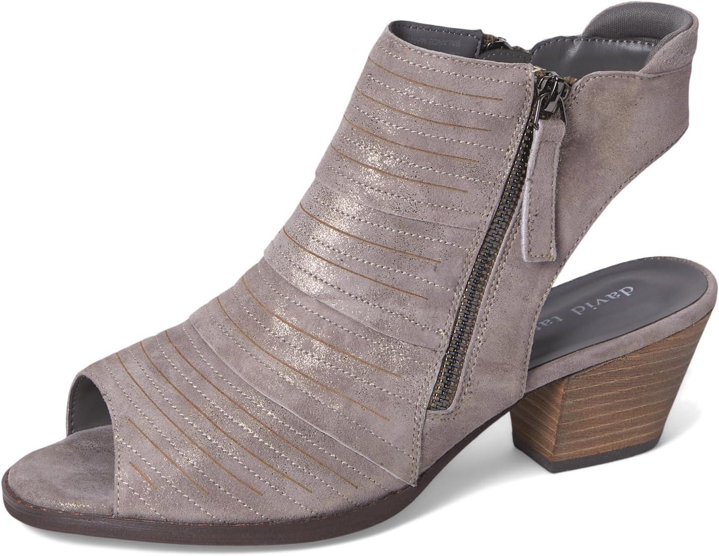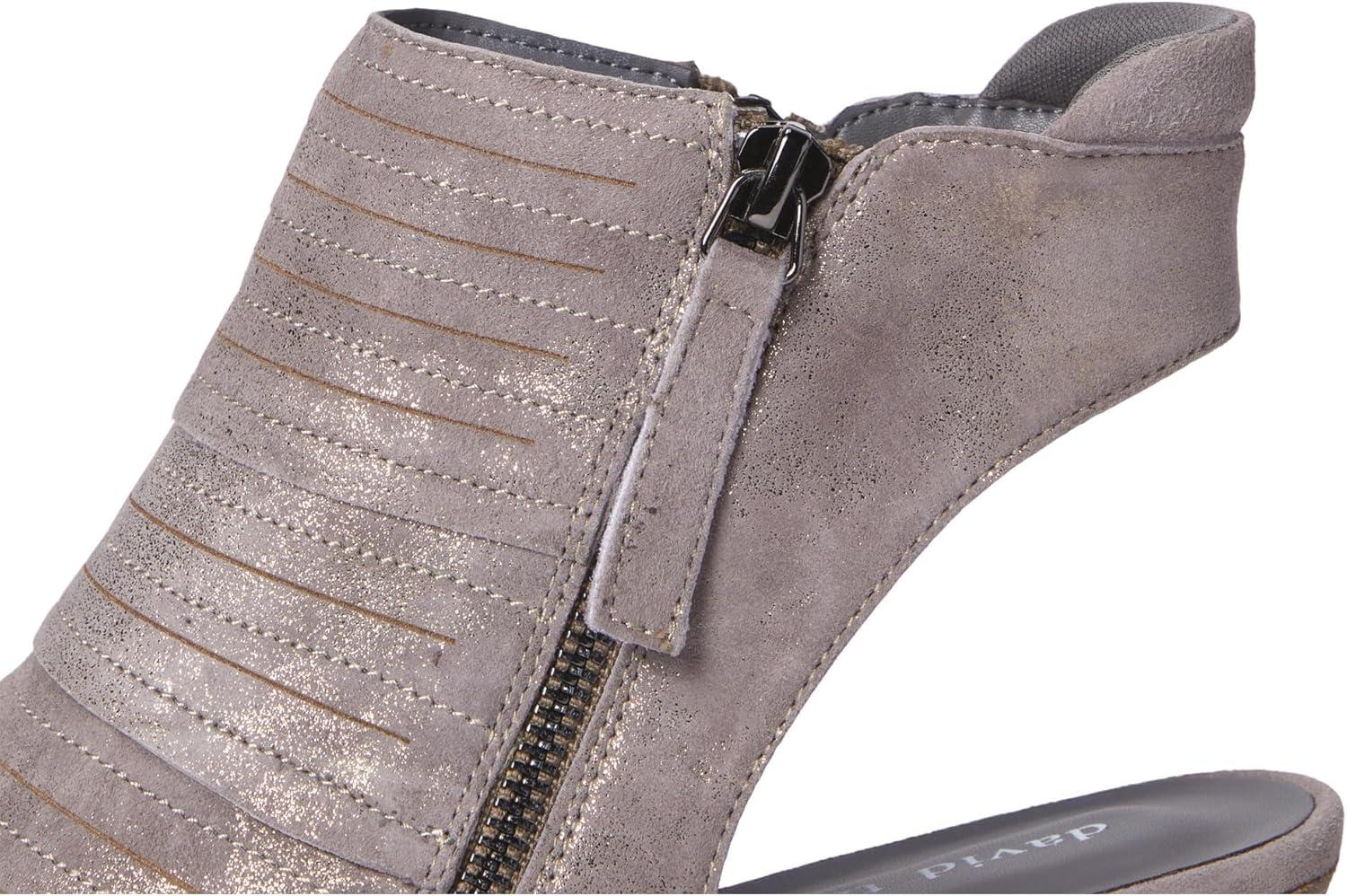 The David Tate® Sideview is a stylish open-toe, open-back sandal featuring dual side zippers. Antique metallic suede and a leather stacked heel make this a great-looking sandal.