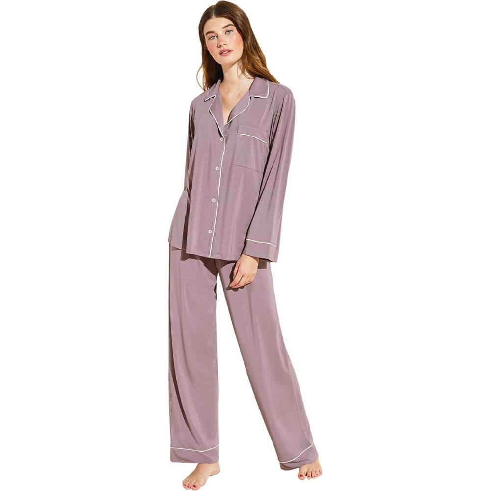 Eberjey Gisele Classic Women’s Pajama Set | Long Sleeve Shirt + Long Pants(Amethyst/Ivory 1)