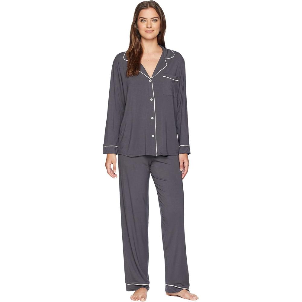 Eberjey Gisele Classic Women’s Pajama Set | Long Sleeve Shirt + Long Pants(Graphite/Sorbet Pink)