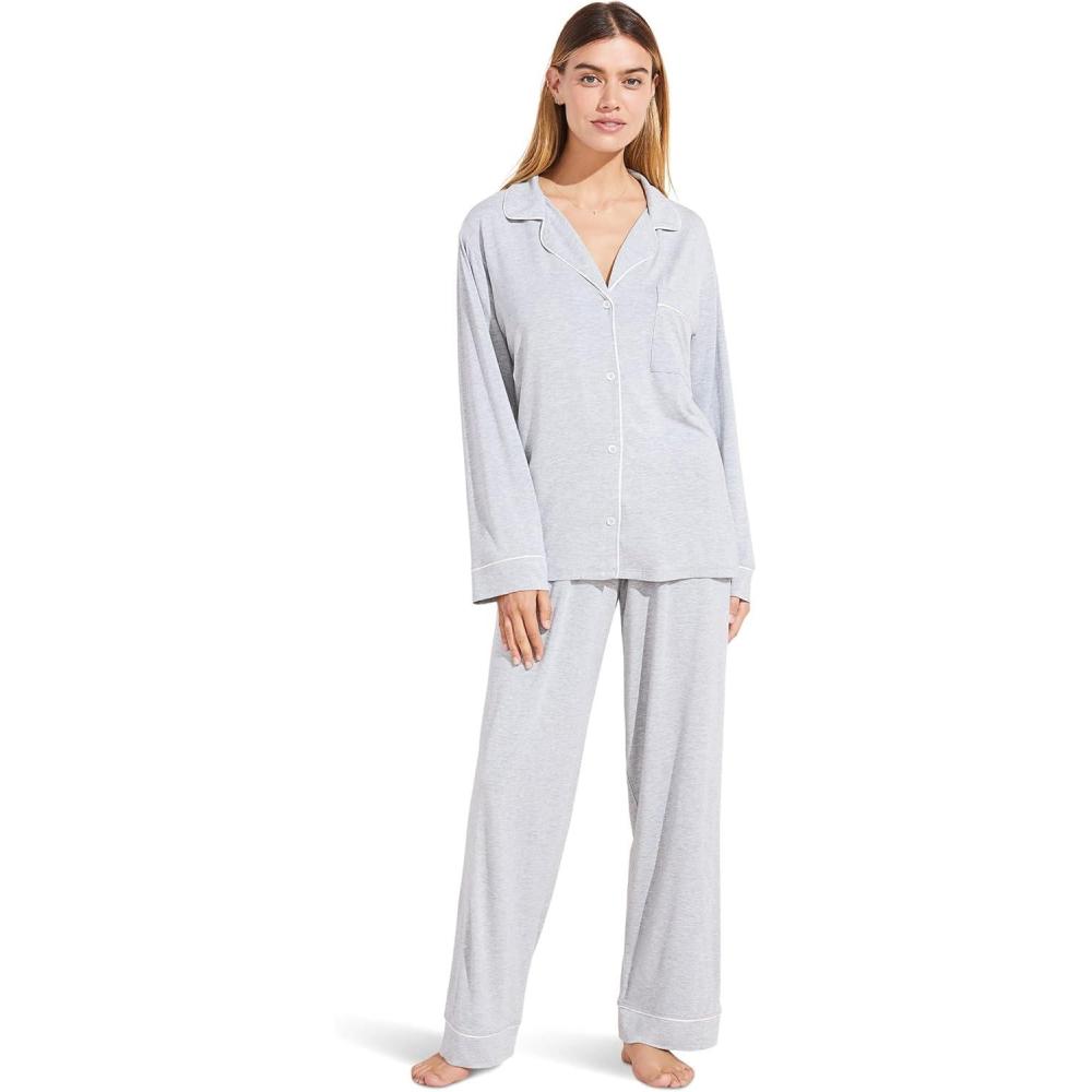 Eberjey Gisele Classic Women’s Pajama Set | Long Sleeve Shirt + Long Pants(Heather Grey/Sorbet Pink)