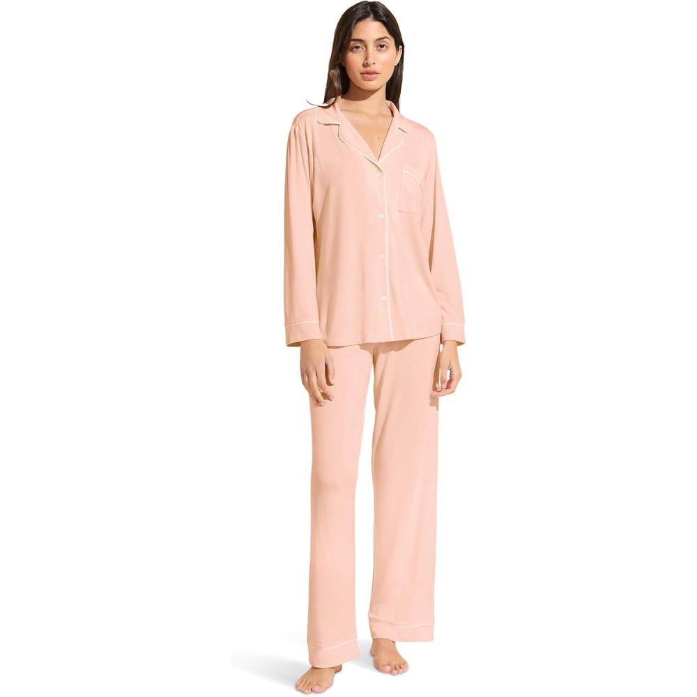 Eberjey Gisele Classic Women’s Pajama Set | Long Sleeve Shirt + Long Pants(Petal Pink)