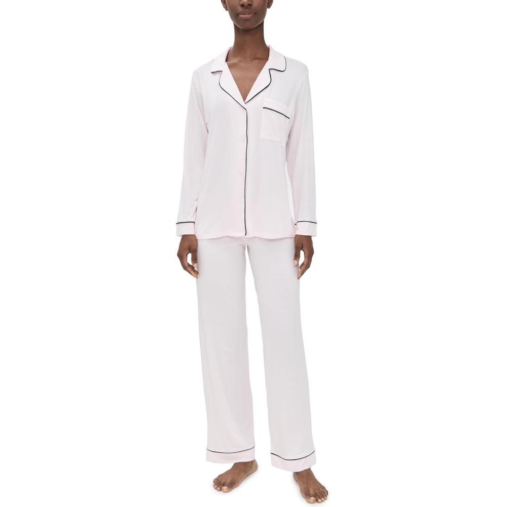 Eberjey Gisele Classic Women’s Pajama Set | Long Sleeve Shirt + Long Pants(Sorbet Pink/Black)