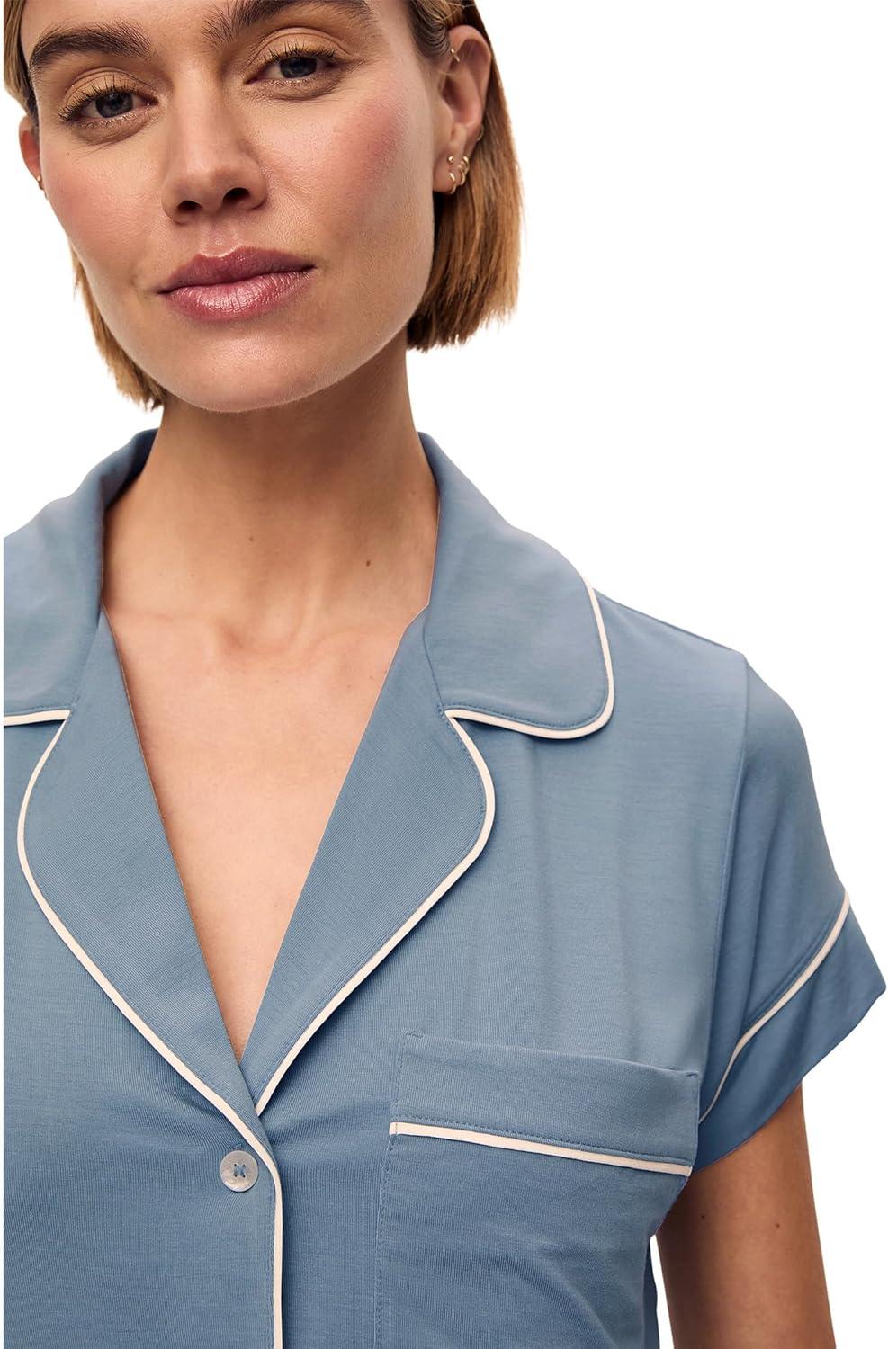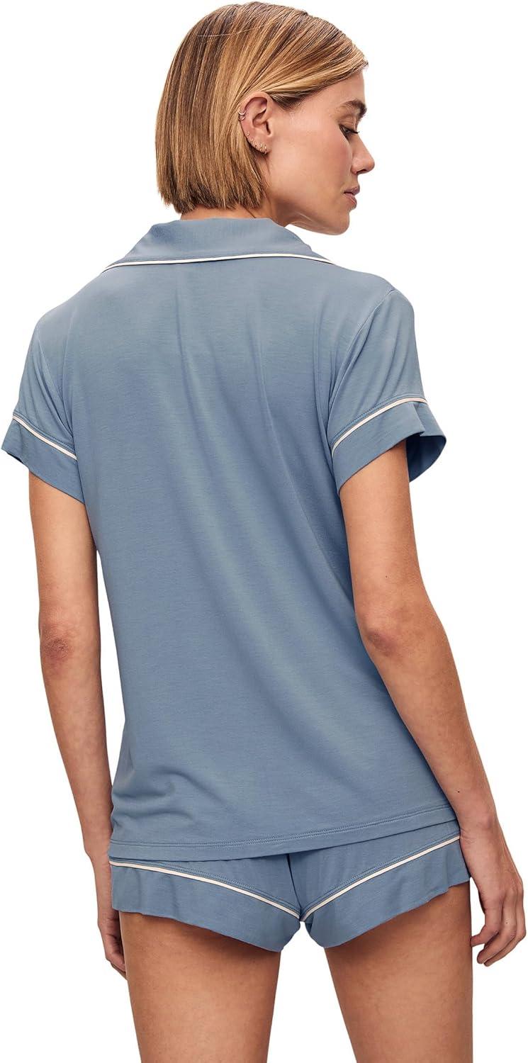 Eberjey Gisele Relaxed Short PJ Set – Sorbet Pink/Black(Faded Denim/Ivory)
