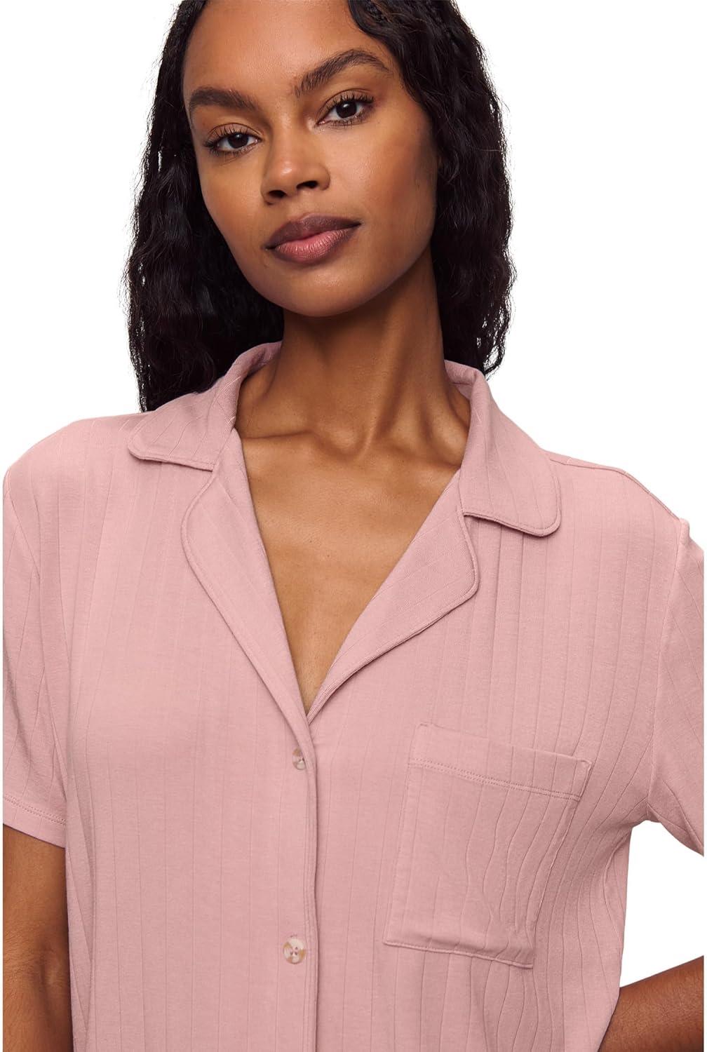 Eberjey Gisele Relaxed Short PJ Set – Sorbet Pink/Black(Pale Mauve)
