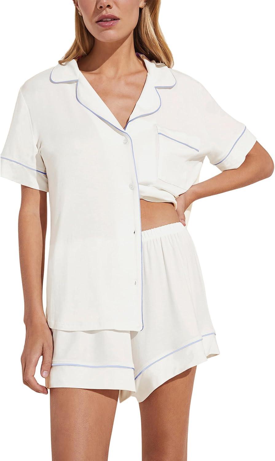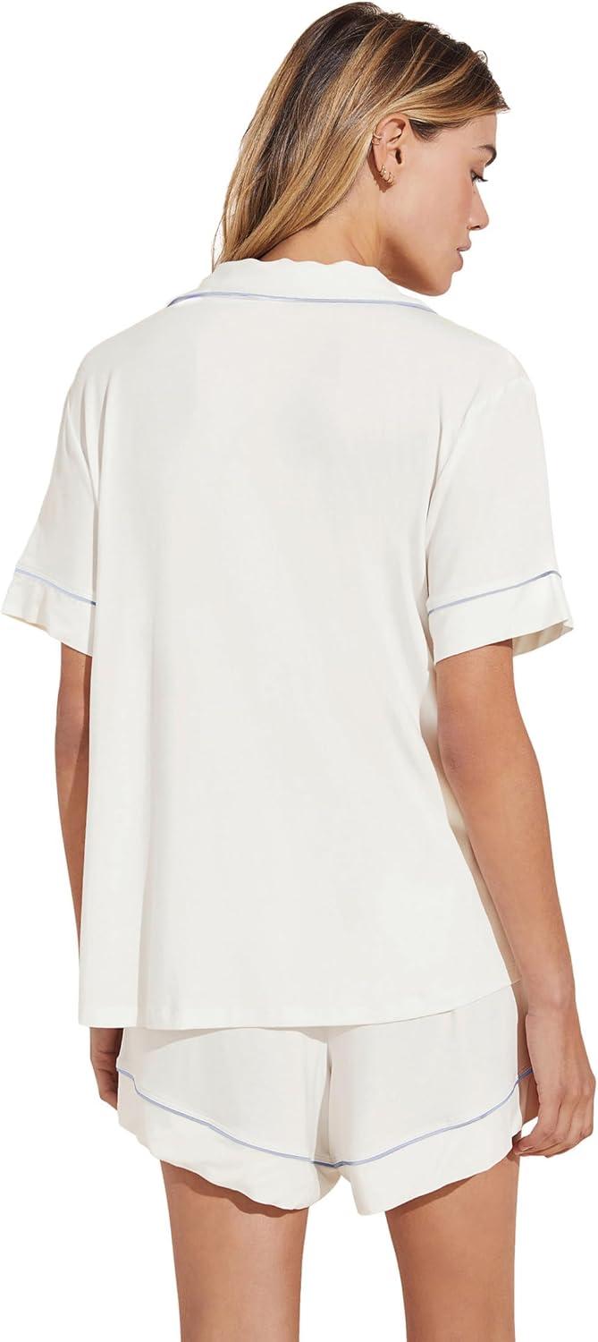 Eberjey Gisele Relaxed Women’s Short PJ Set(White/Ice Blue)