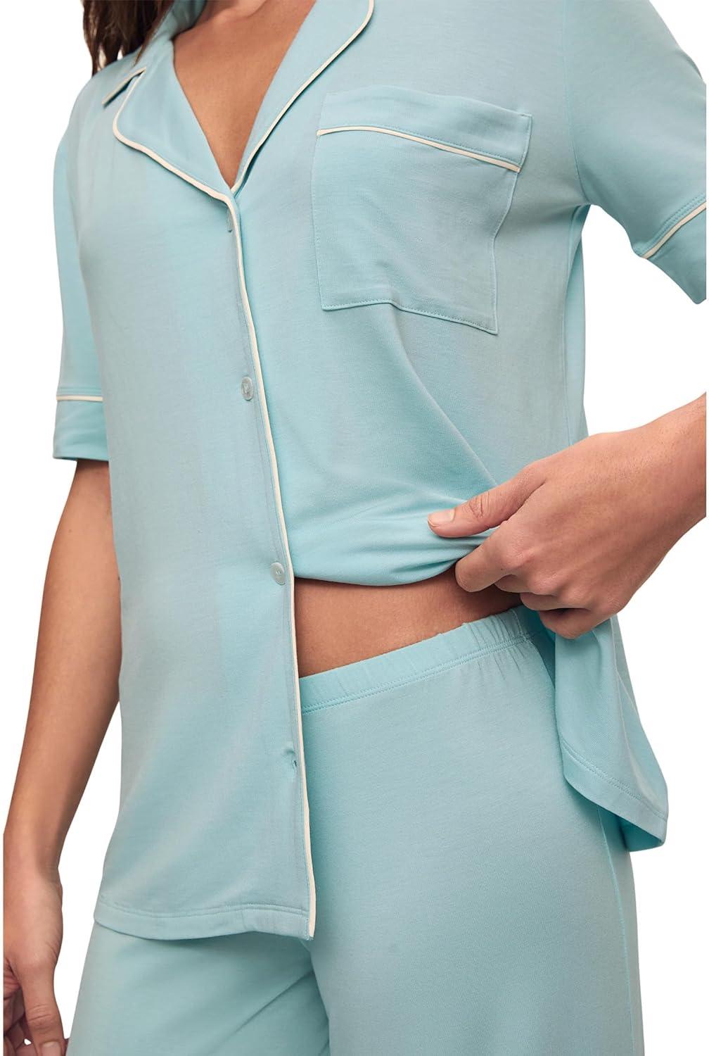 Eberjey Gisele Short Sleeve Pant PJ Set(Canal Blue/Ivory)