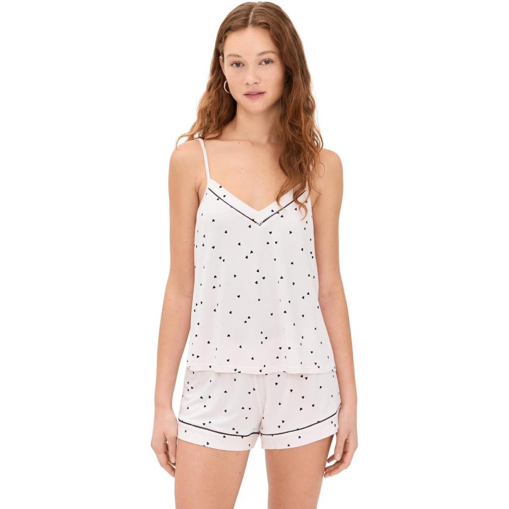 Eberjey Women’s Fiona Double V Cami & Shorts Pajama Set(Little Heart Sorbet Pink/Black)