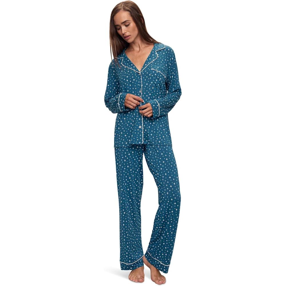 Eberjey Women’s Gisele Printed Long PJ Set(Festive Lights Sapphire/Ivory)