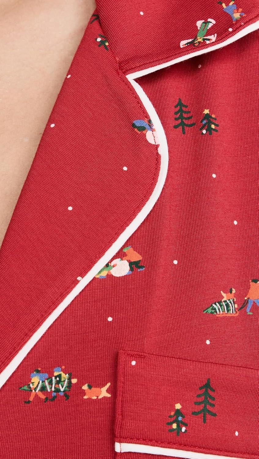 Eberjey Women’s Gisele Printed Long PJ Set(Winter Wonderland Haute Red/Iv)