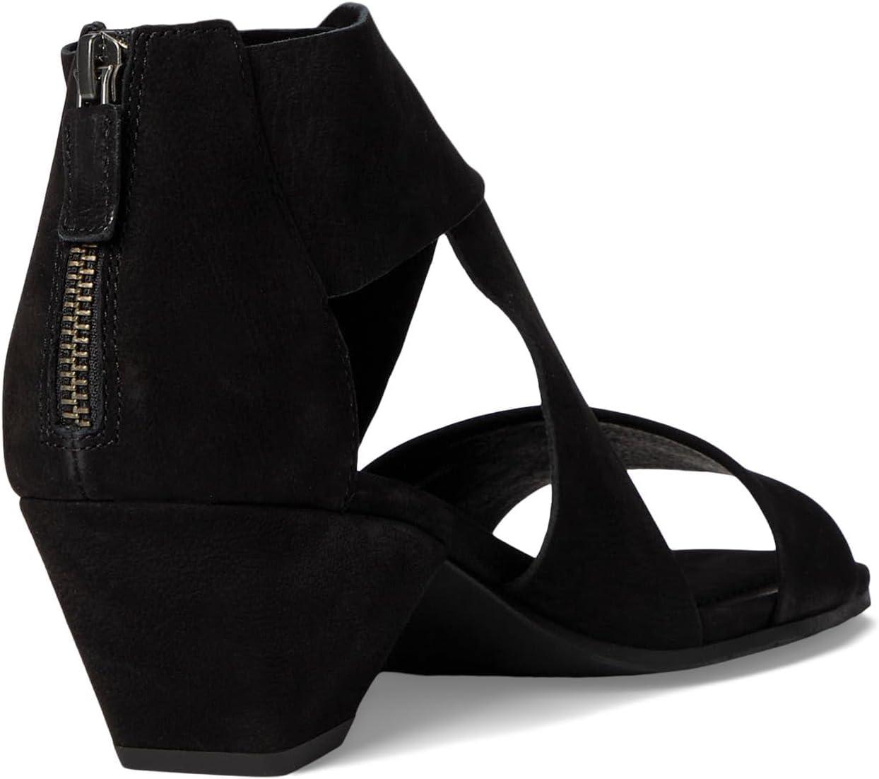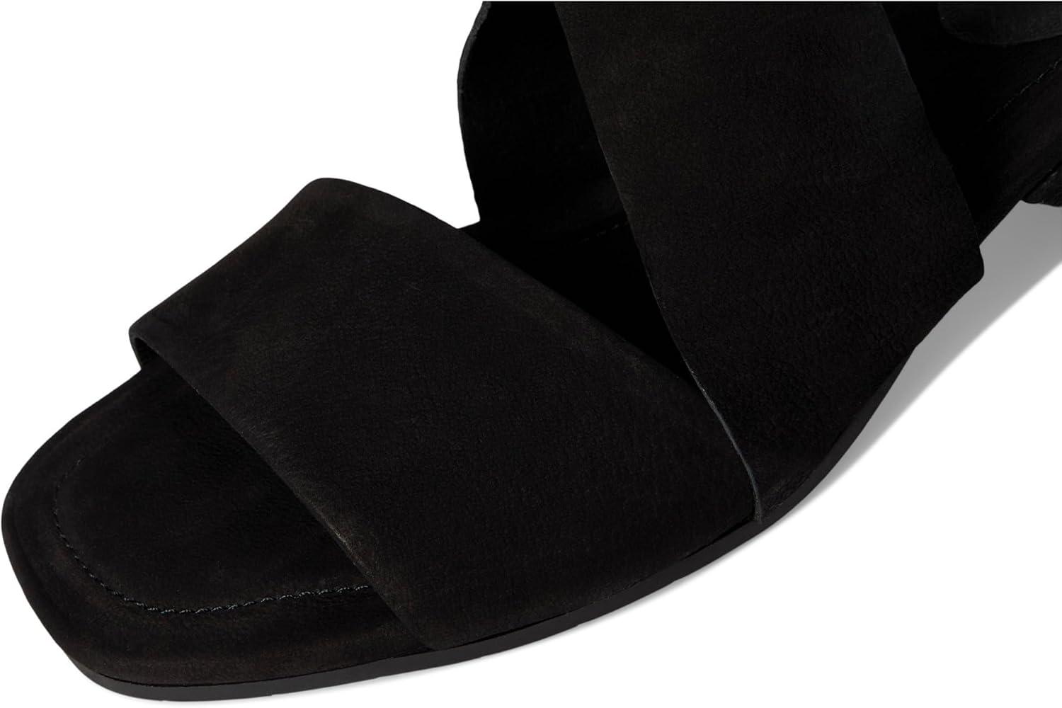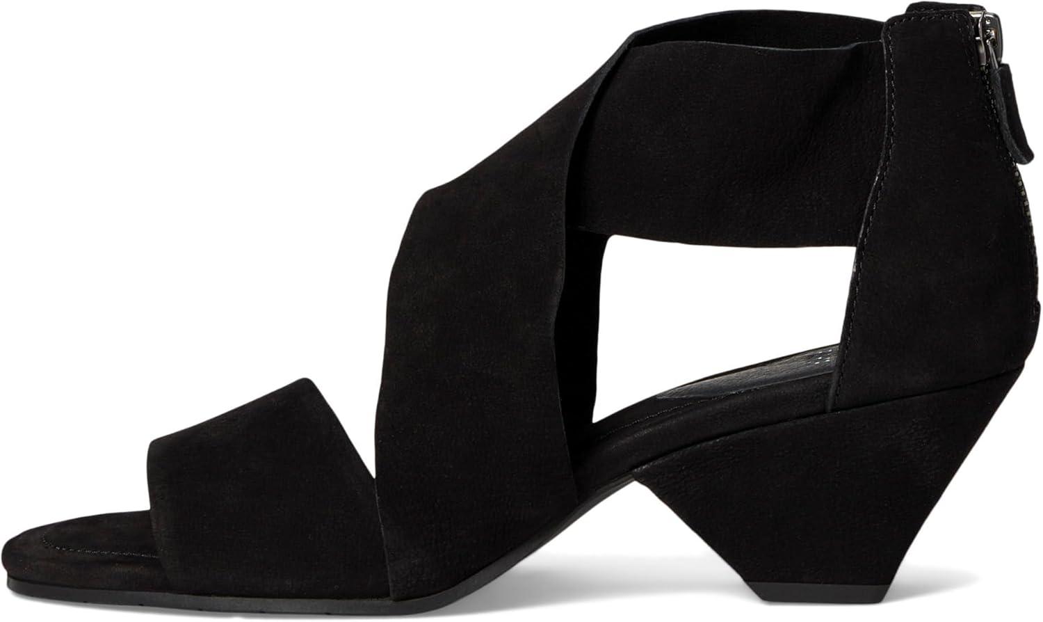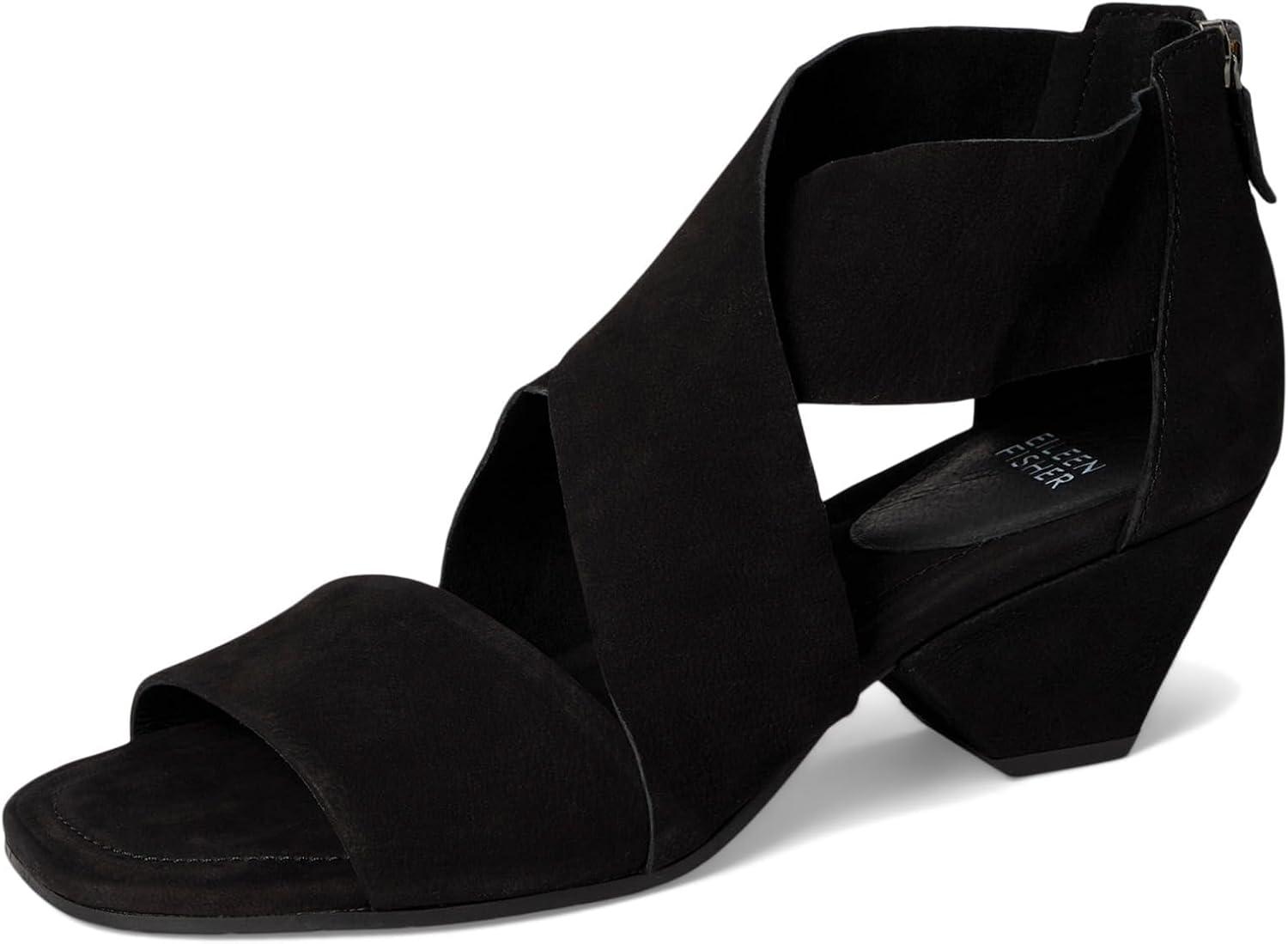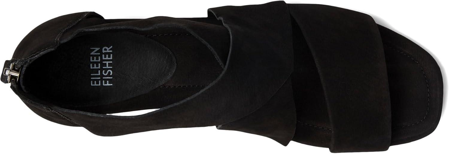 The Eileen Fisher Junie is a perfect summer sandal with soft unlined leather straps and a back zipper for easy entry. It has an asymmetrical heel wrapped in leather, for poised elevation. Breathable leather lining and padded foam insole. Open, square toe silhouette. Flexible rubber outsole.