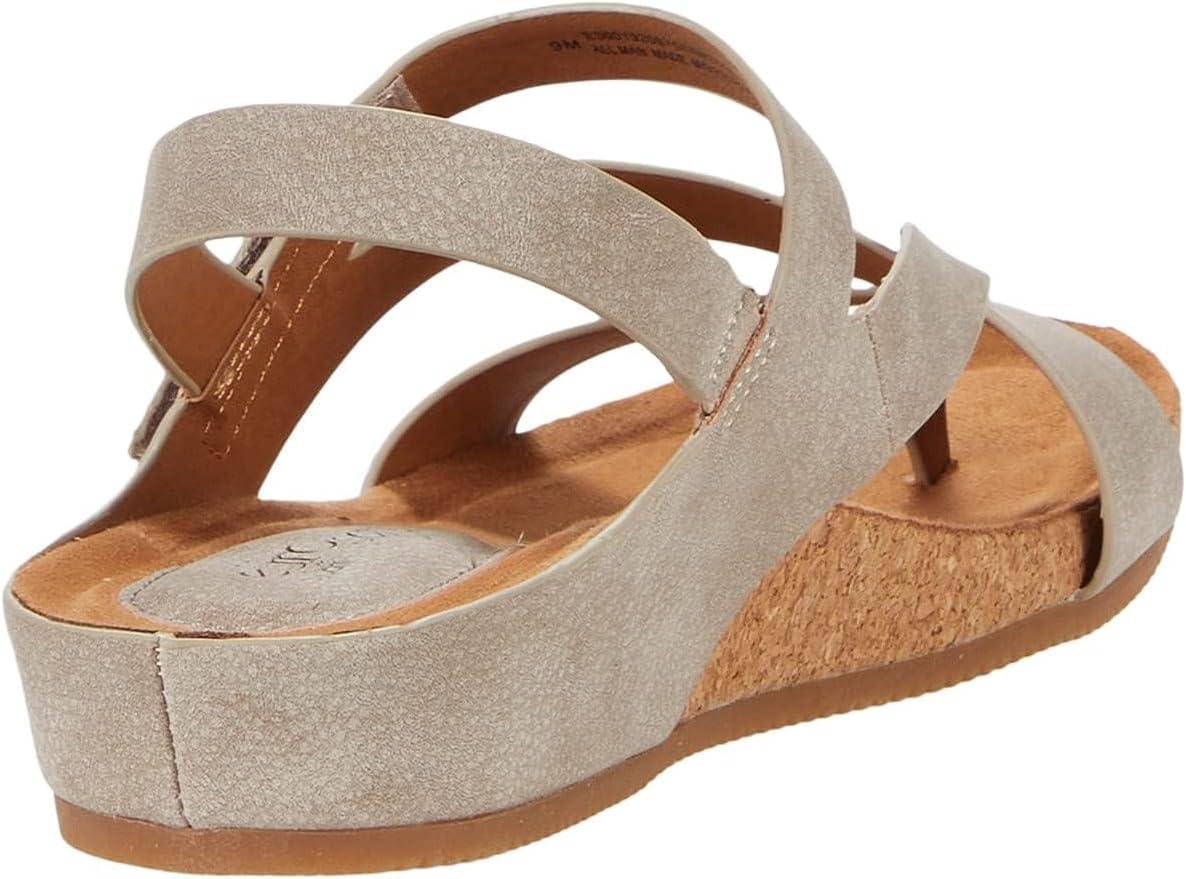 strappy thong sling sandal, hidden hook and loop adjustability, flexible outsole, padded footbed