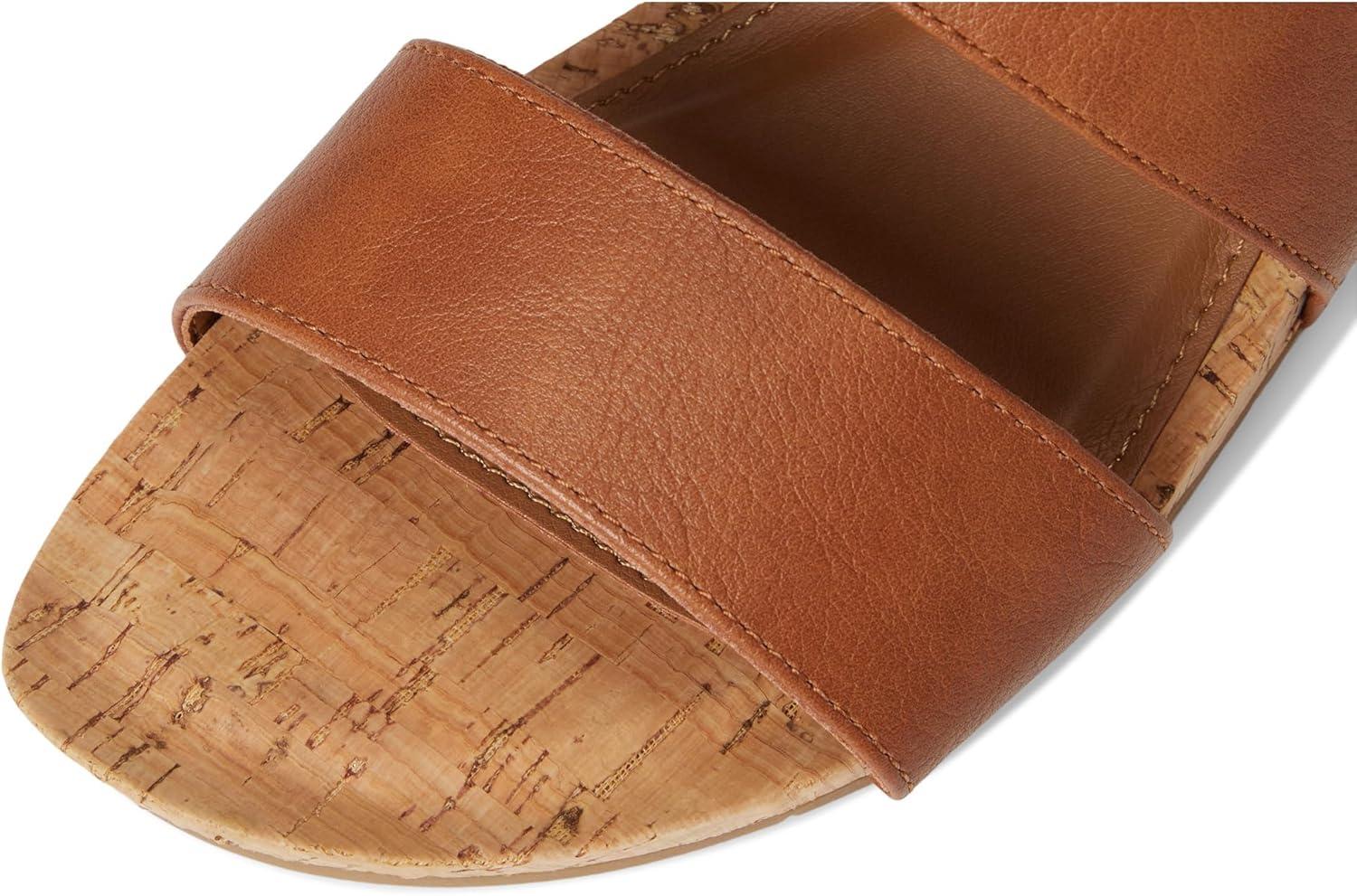 two piece upper, adjustable sling, hook and loop adjustability, cork wrapped wedge, full coverage, flexible outsole