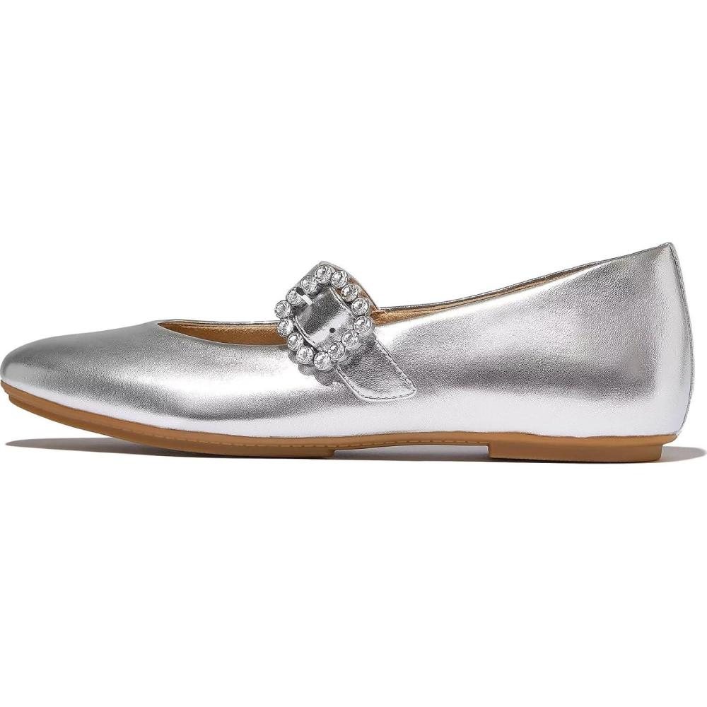 FitFlop Women’s Delicato Crystal-Buckle Leather Mary Janes Ballet Flat(Silver)