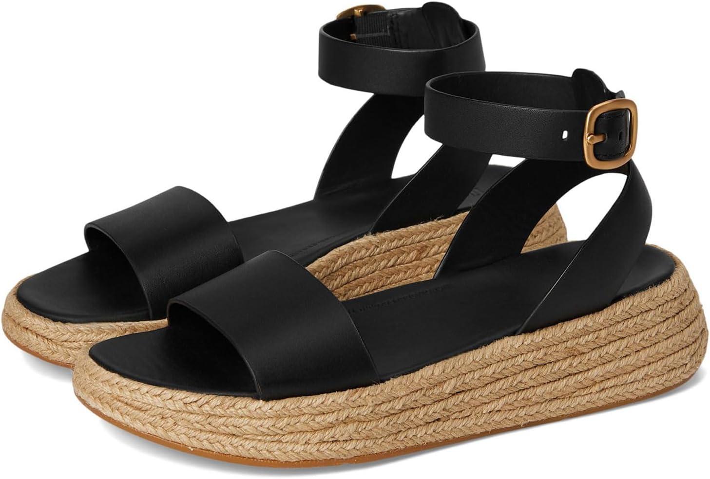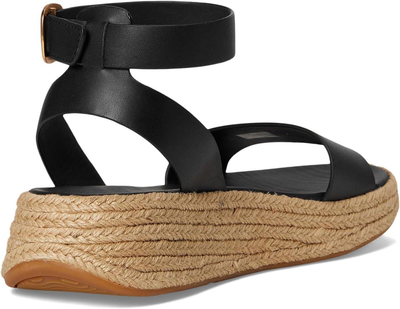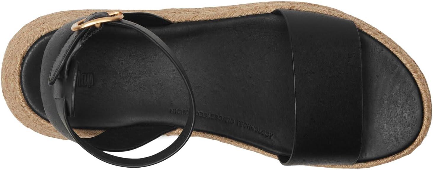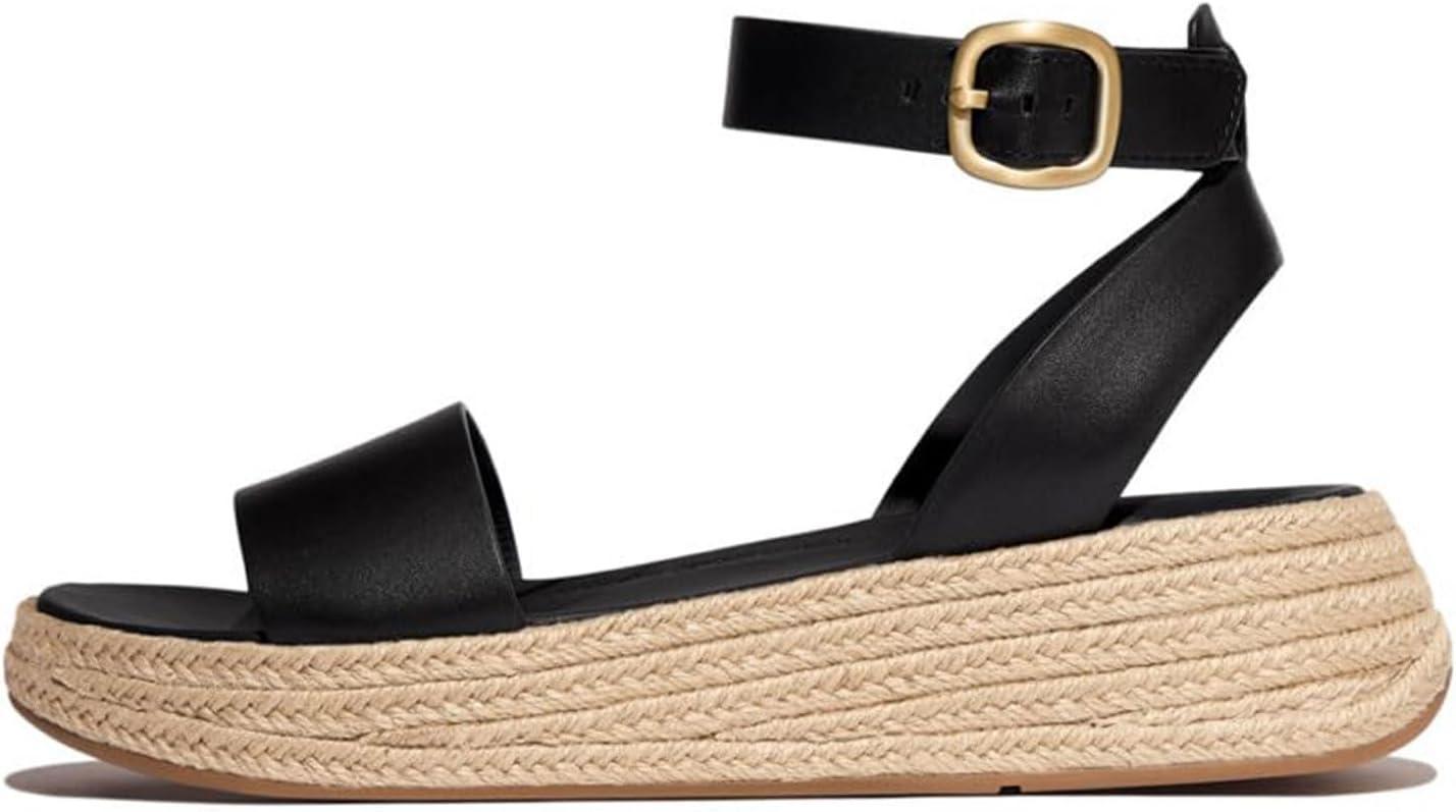 FitFlop womens F-mode Espadrille Leather Flatform a/Strap Sandals(Black)