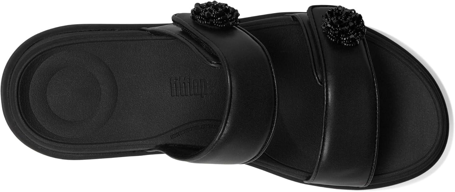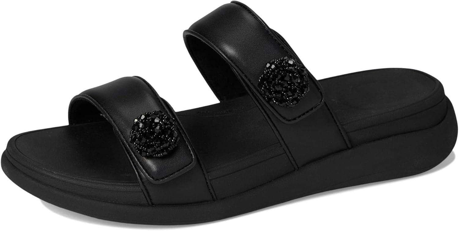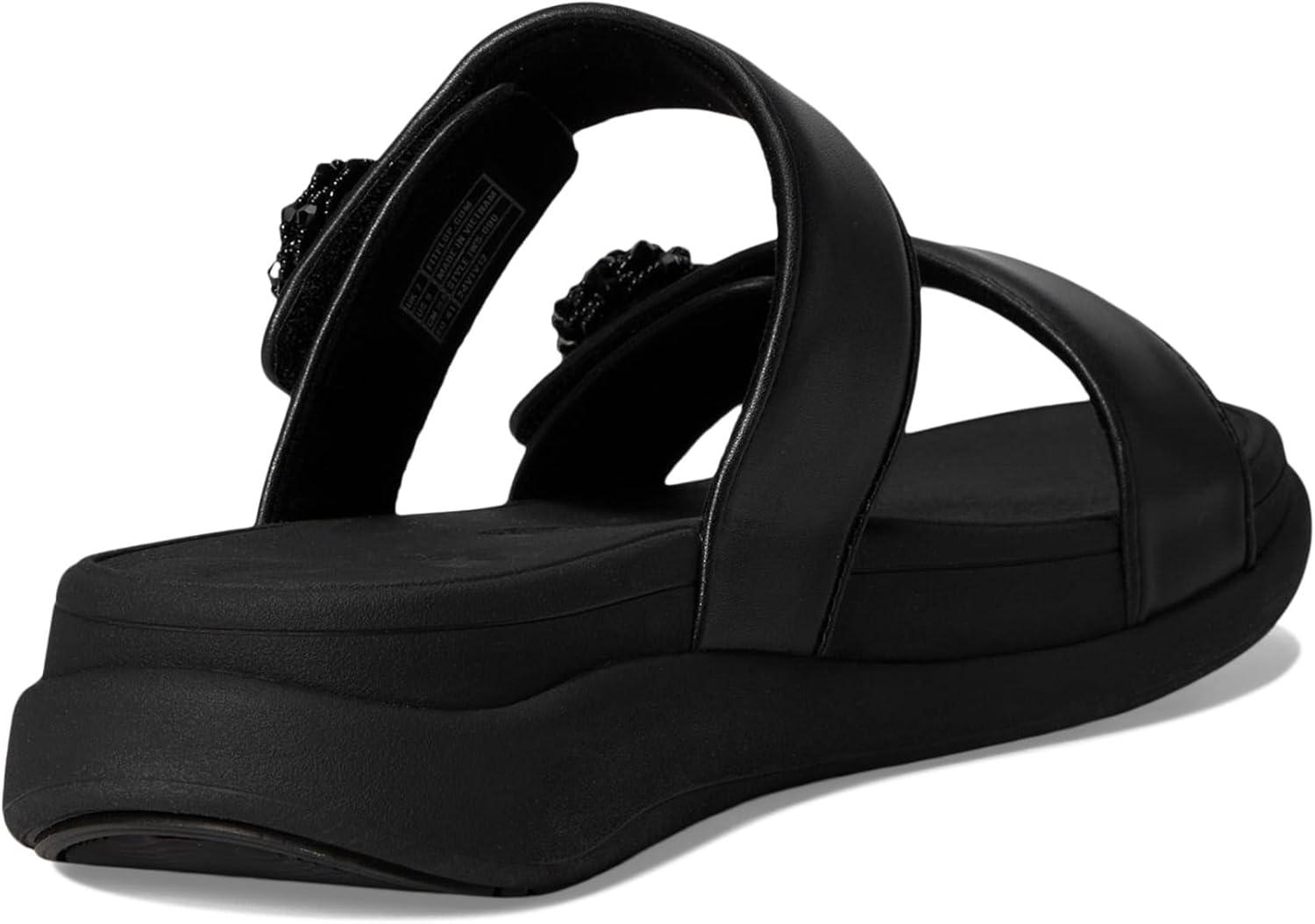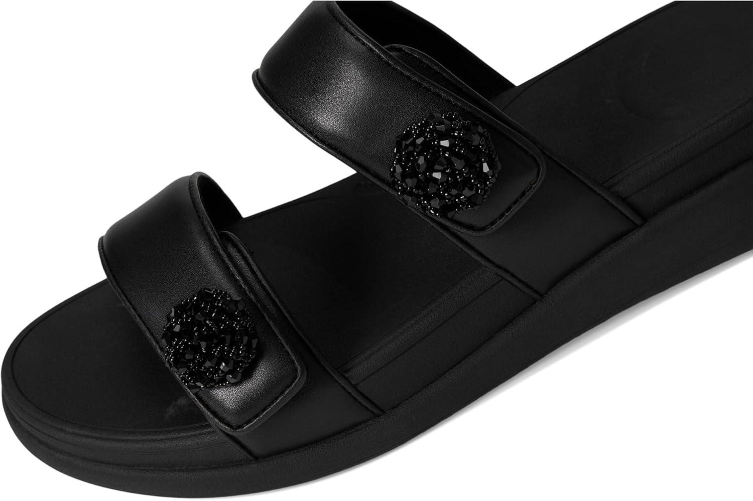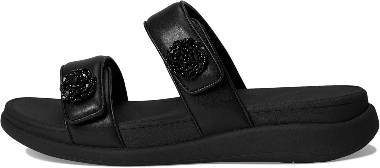 FitFlop womens F-mode Go Beadie-button Adj. Flatform 2-bar Slides(All Black)