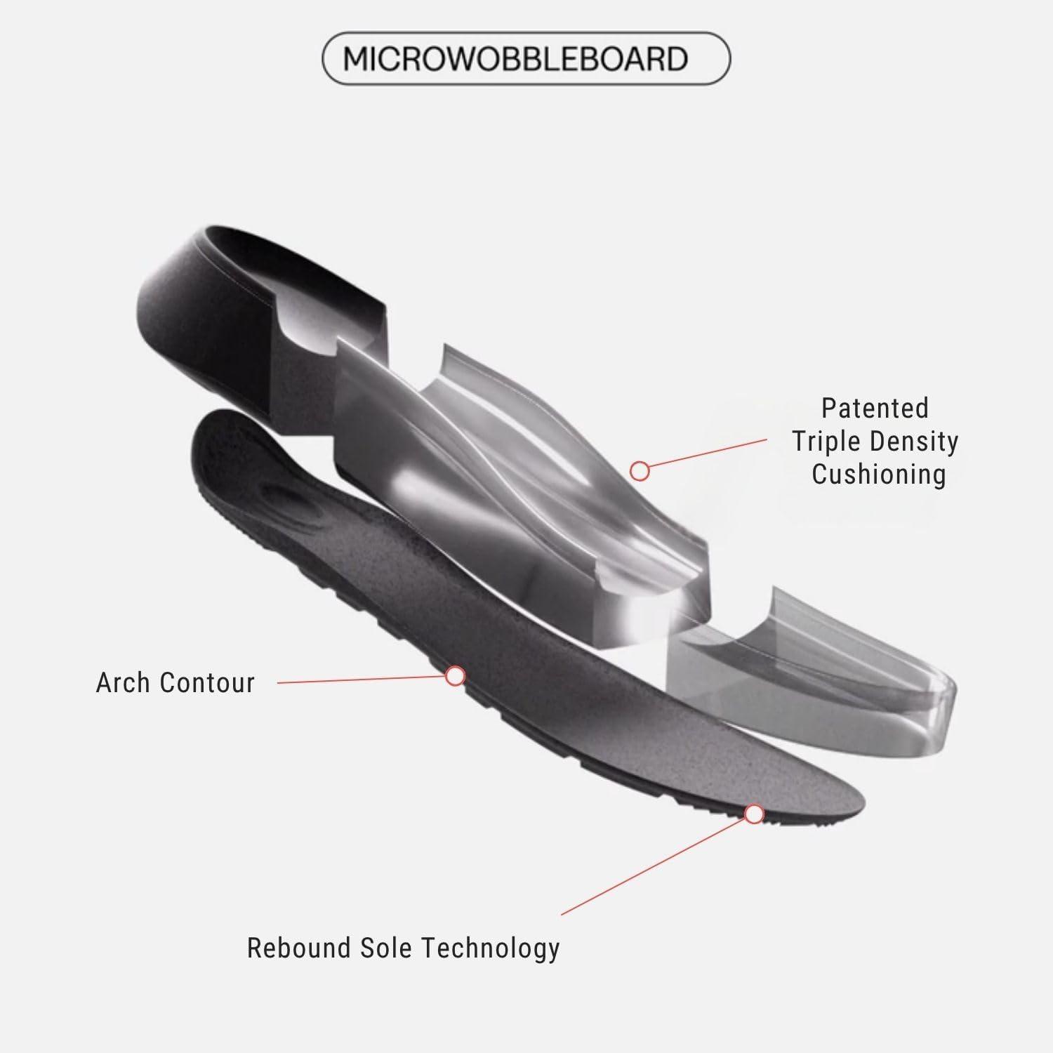 • Light pressure-diffusing Microwobbleboard midsole – triple-density cushioning follows 3 footstep stages (firm heel/soft middle/medium at toes)