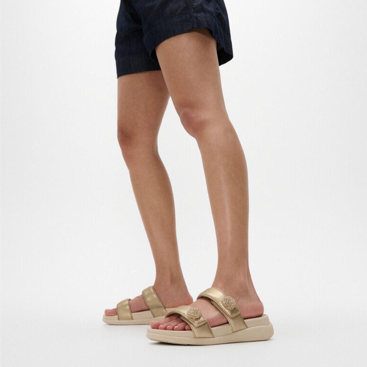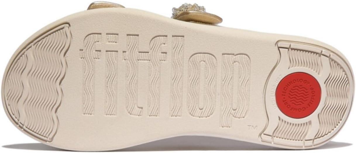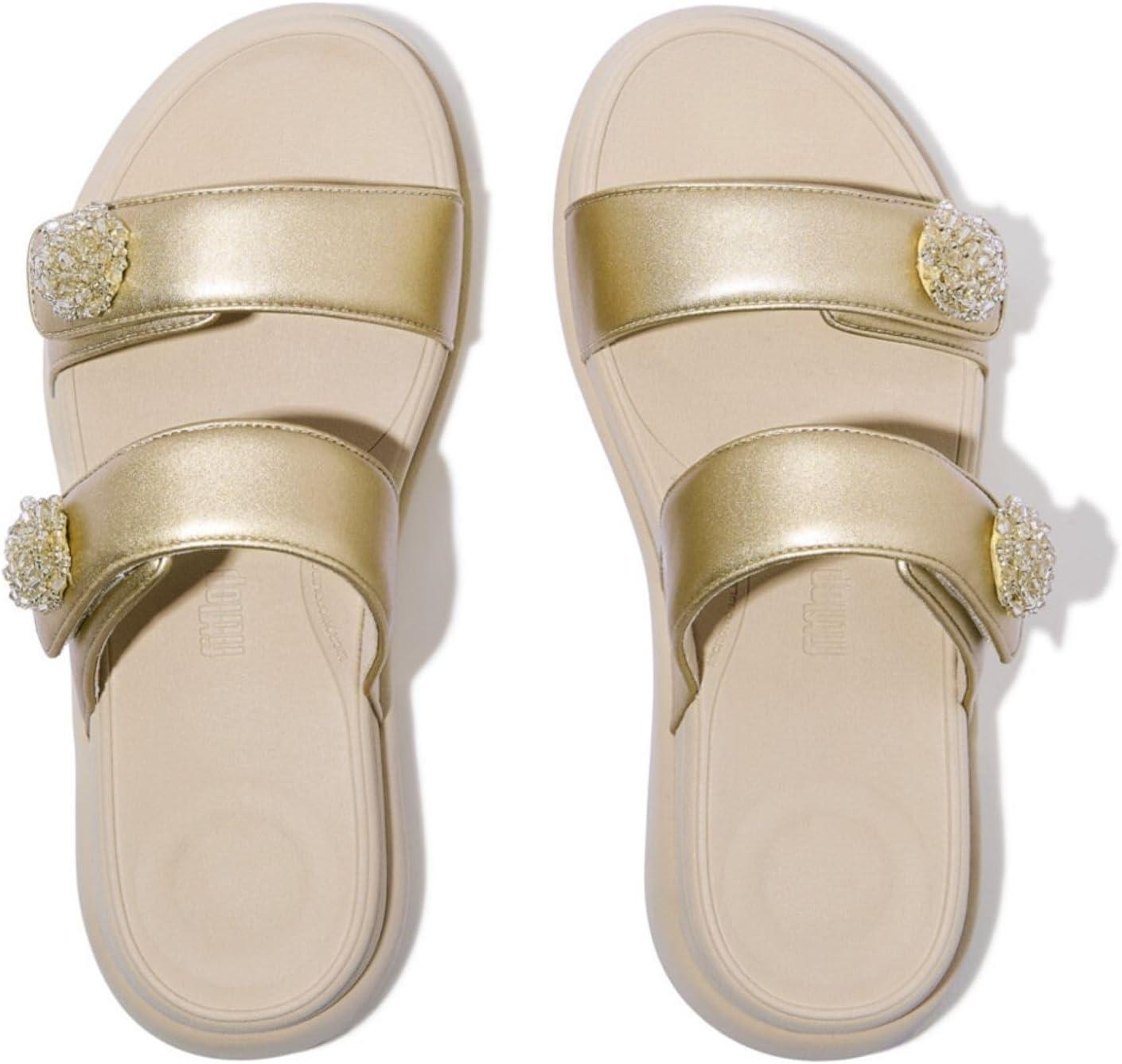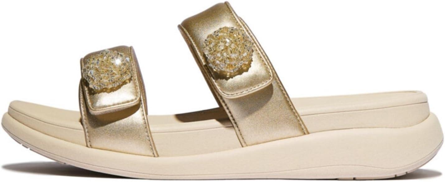 FitFlop womens F-mode Go Beadie-button Adj. Flatform 2-bar Slides(Platino)