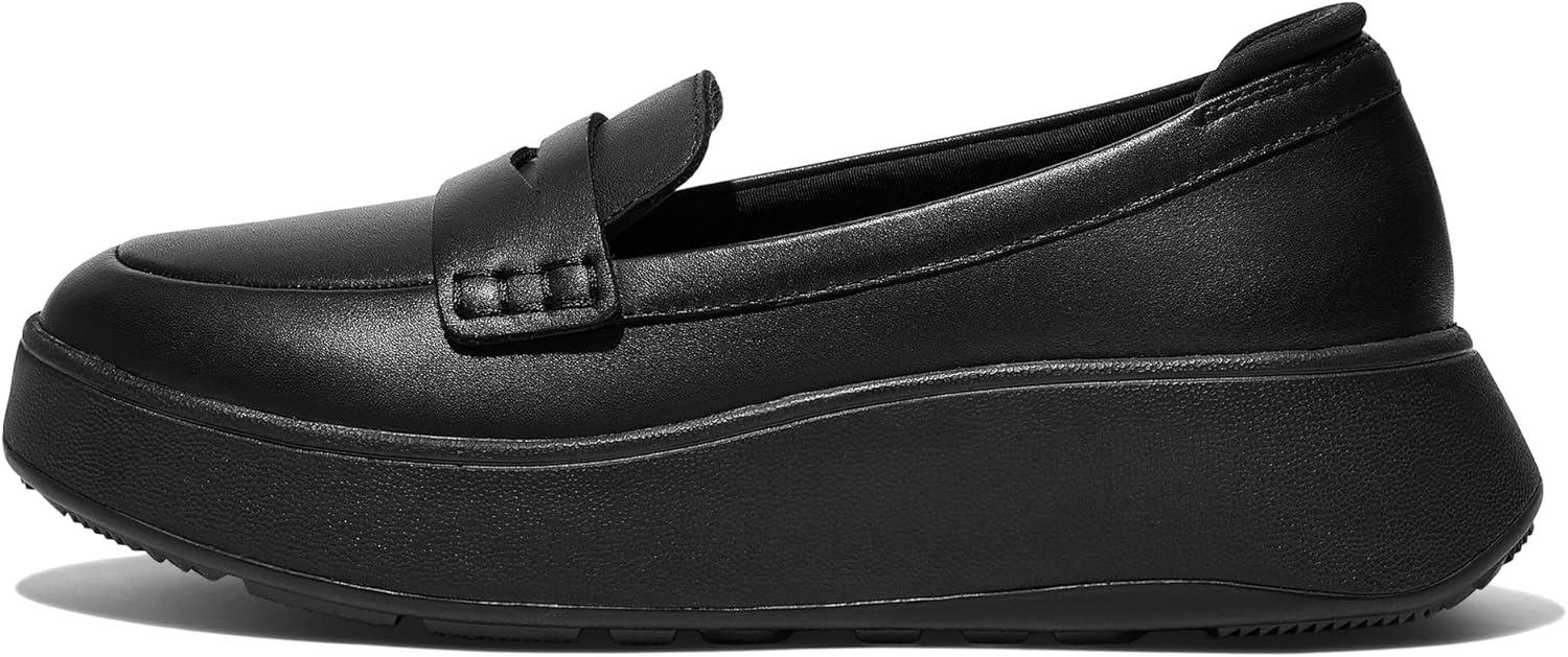 FitFlop Womens F-Mode Leather Flatform Penny Loafers(All Black)