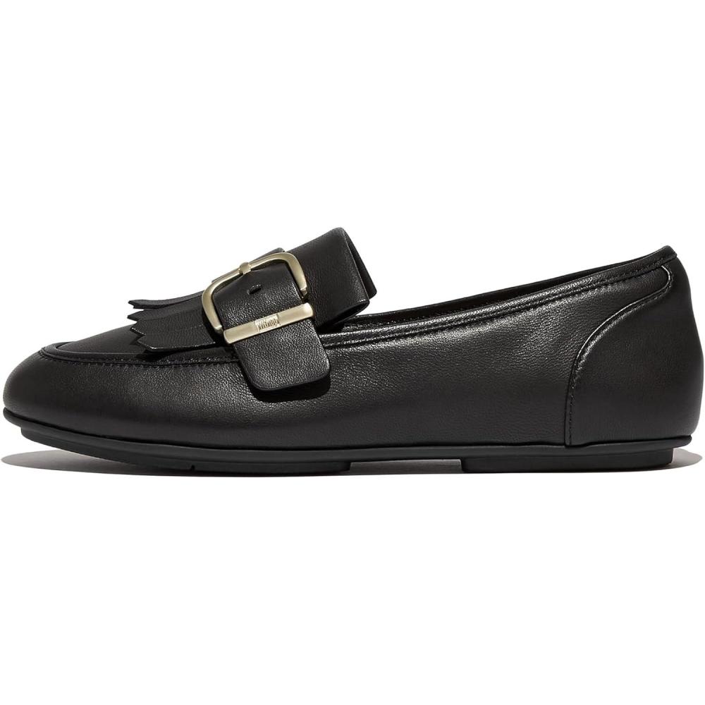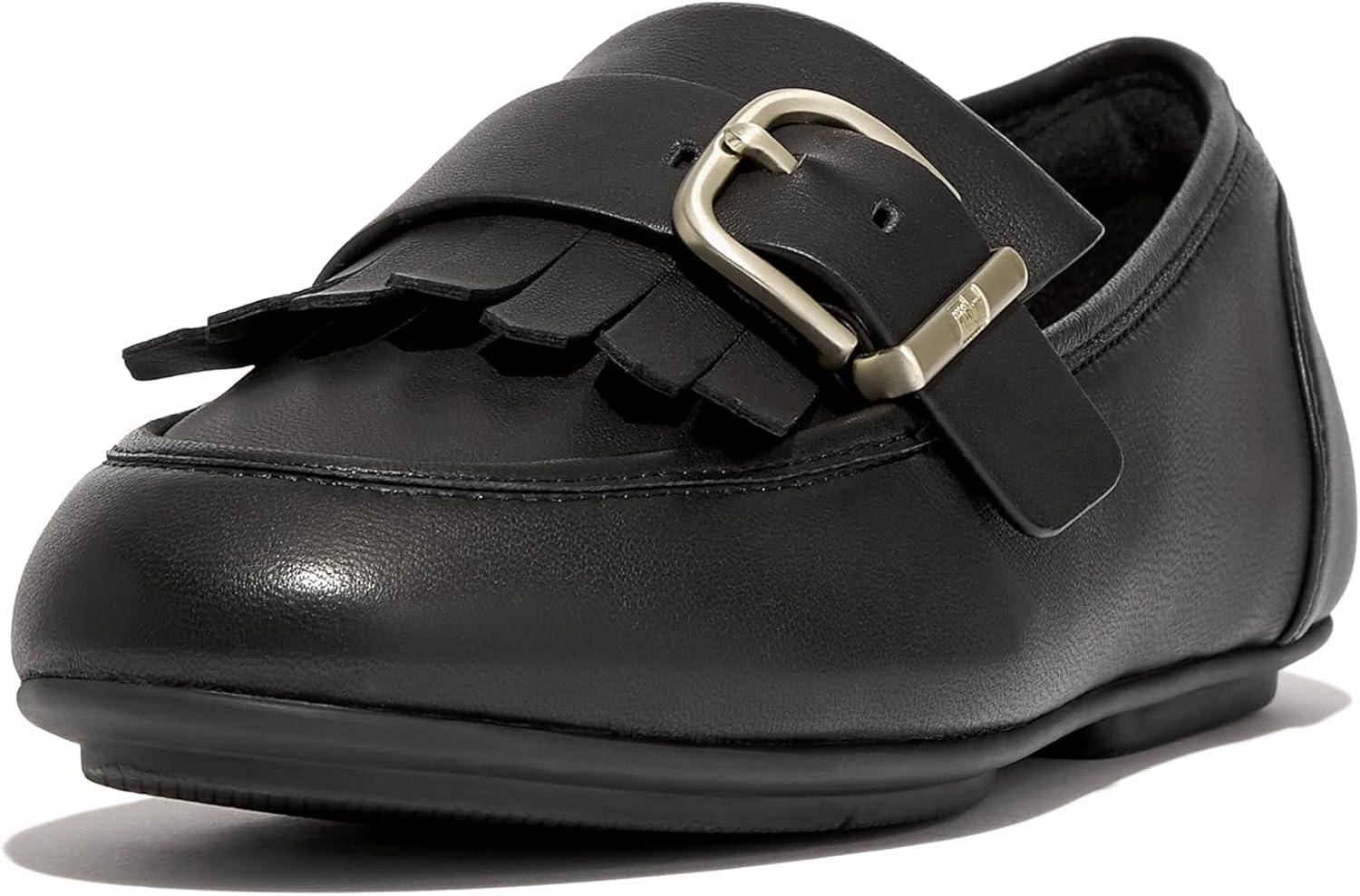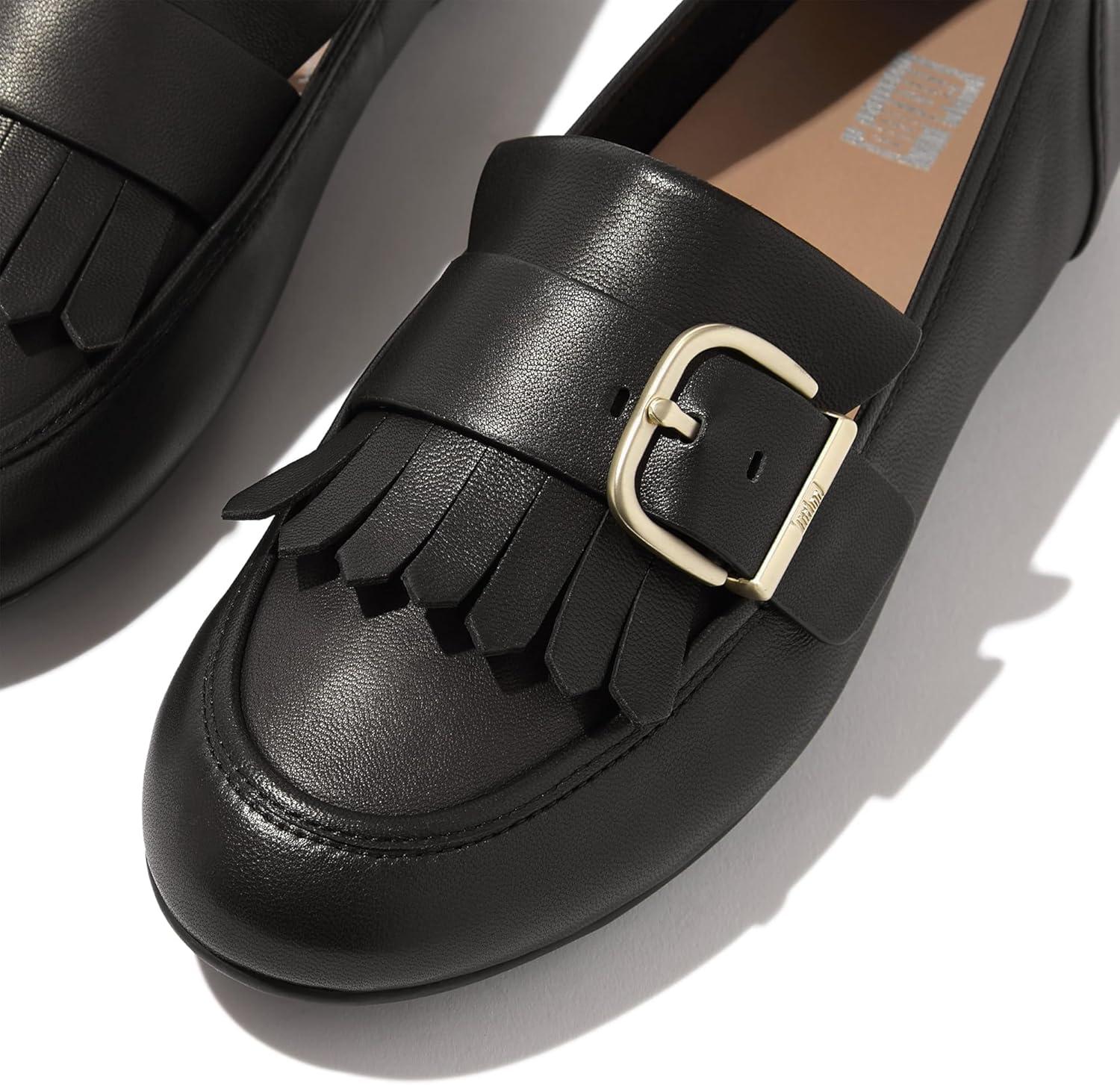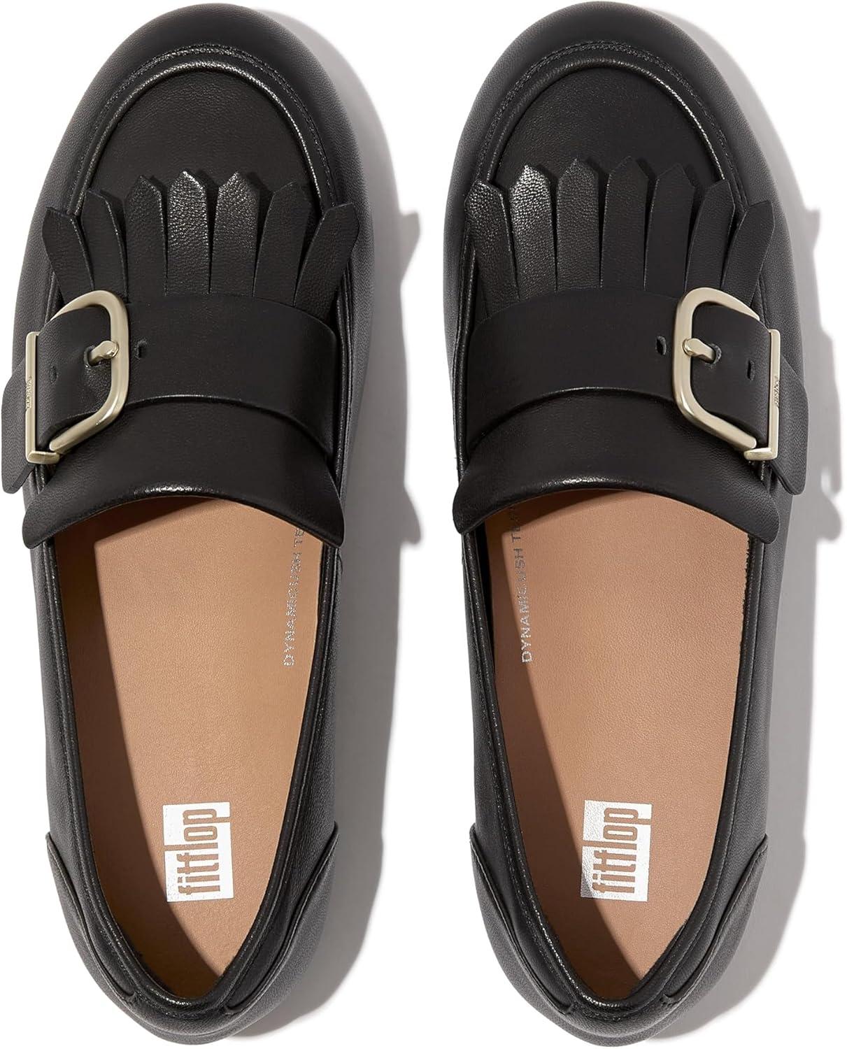 FitFlop Womens F-Mode Leather Flatform Penny Loafers(Black)