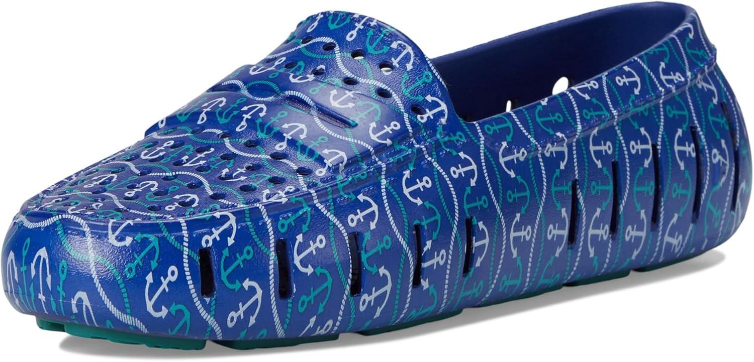 Floafers Women’s Posh Driver Print Boat Shoe(Blue Nautical Anchor/Teal)